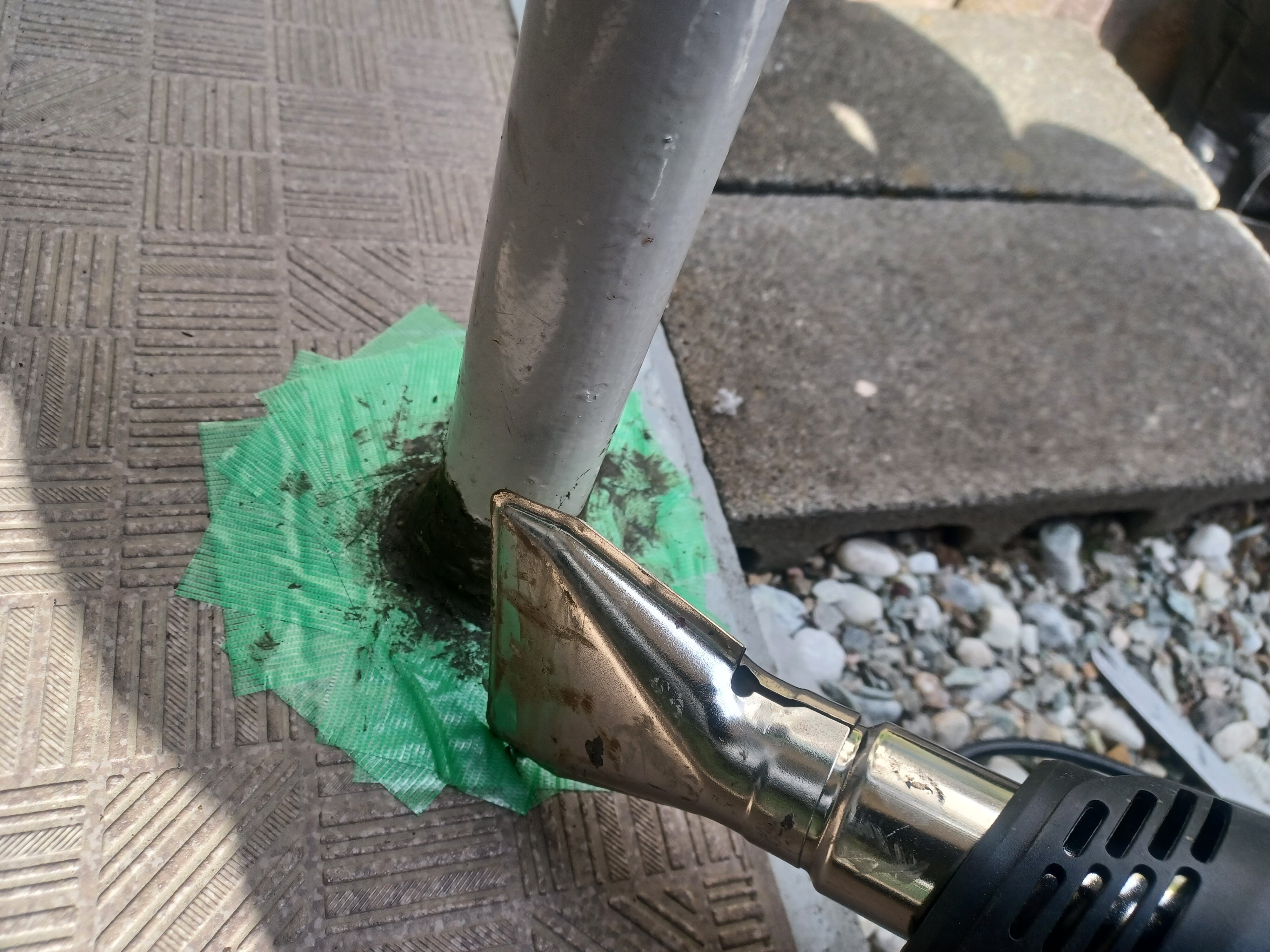 12月上旬で日中の気温が11℃でしたので、ヒートガンで温めて硬化の促進をさせながら作業しました。