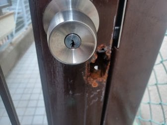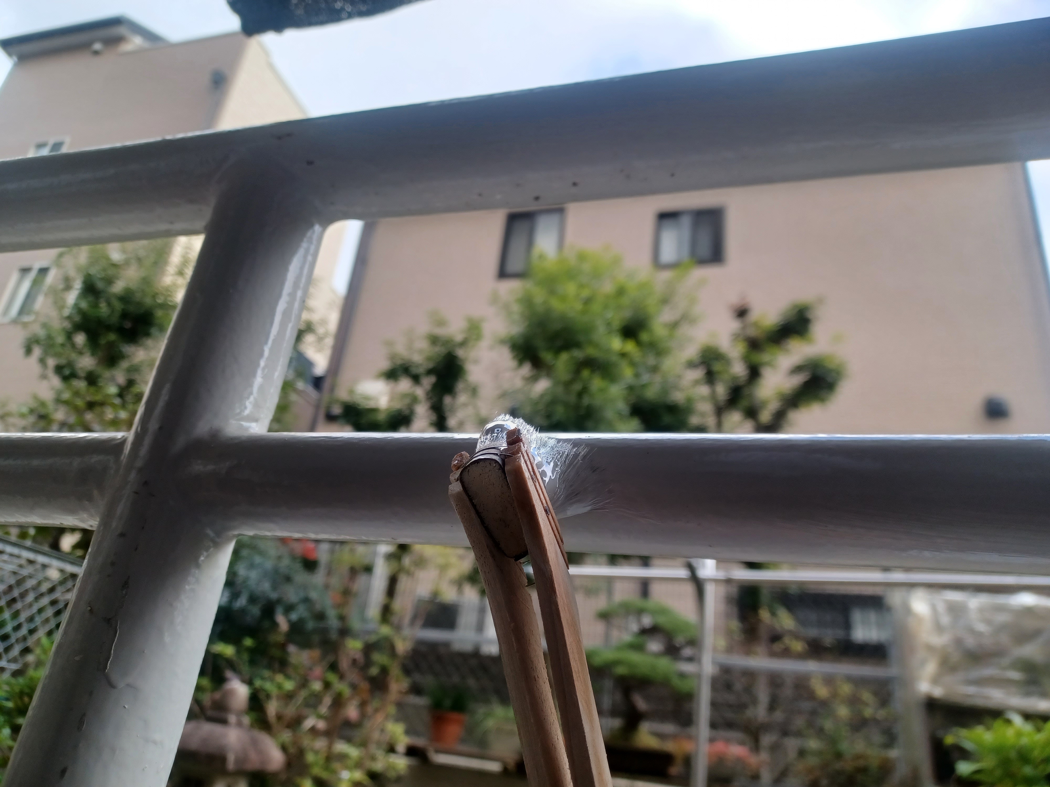 ベランダの手摺の根元が千切れてましたので、手摺はグラグラな状態でした。