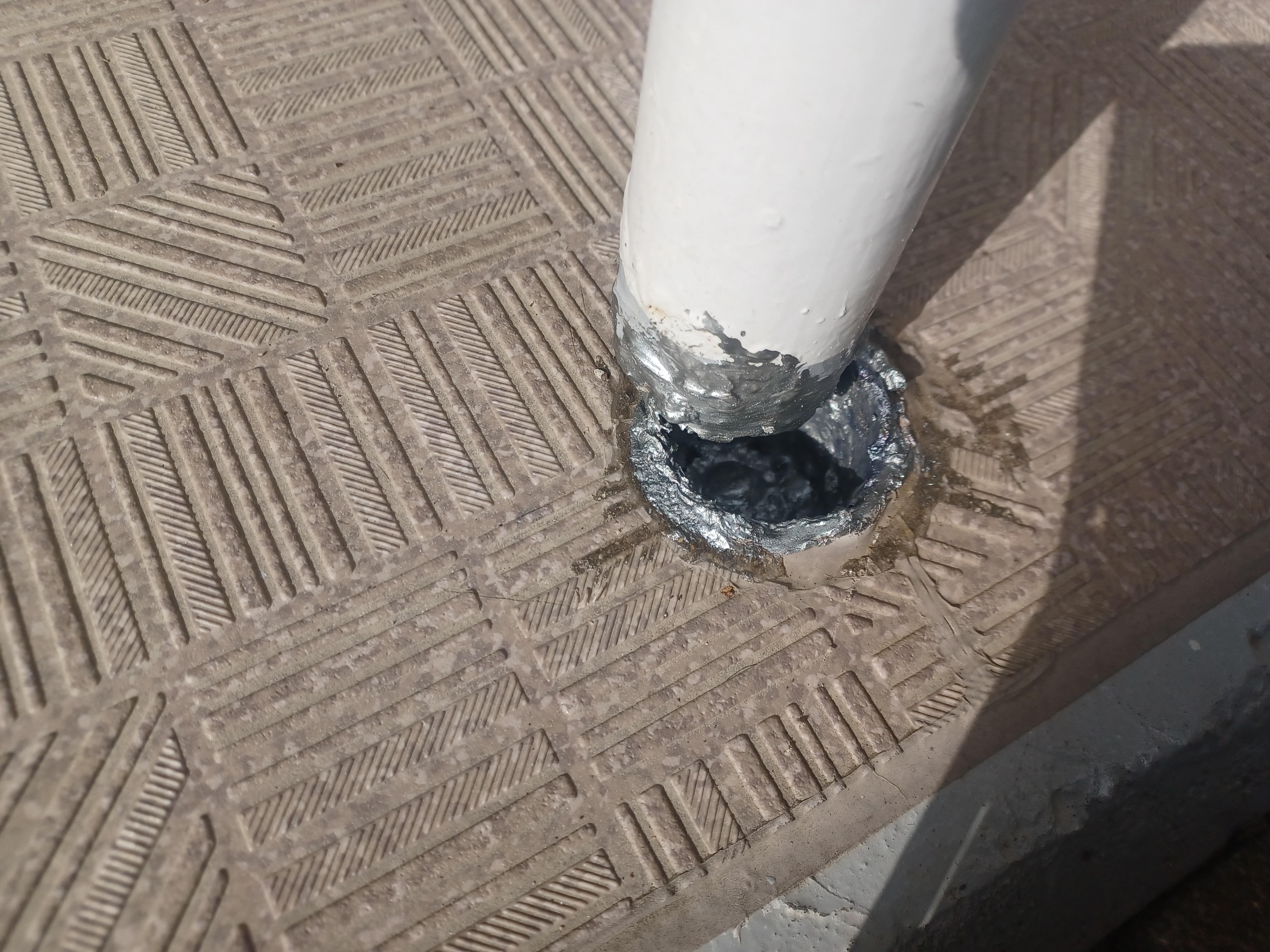 手摺の状態により上に穴を開けて、その穴から樹脂モルタルを流し込むという場合もあります。