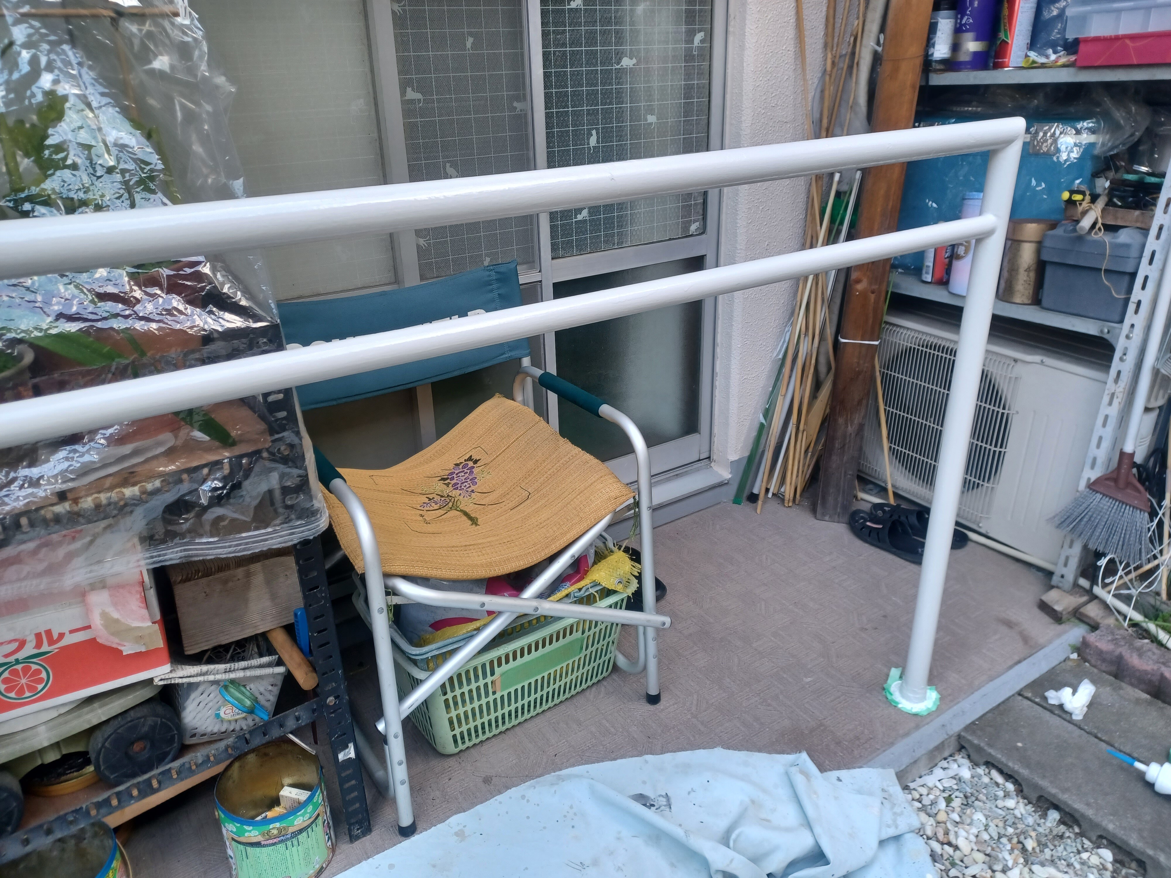 これで手摺の根元の補強と手摺全体の塗装が完成しました。