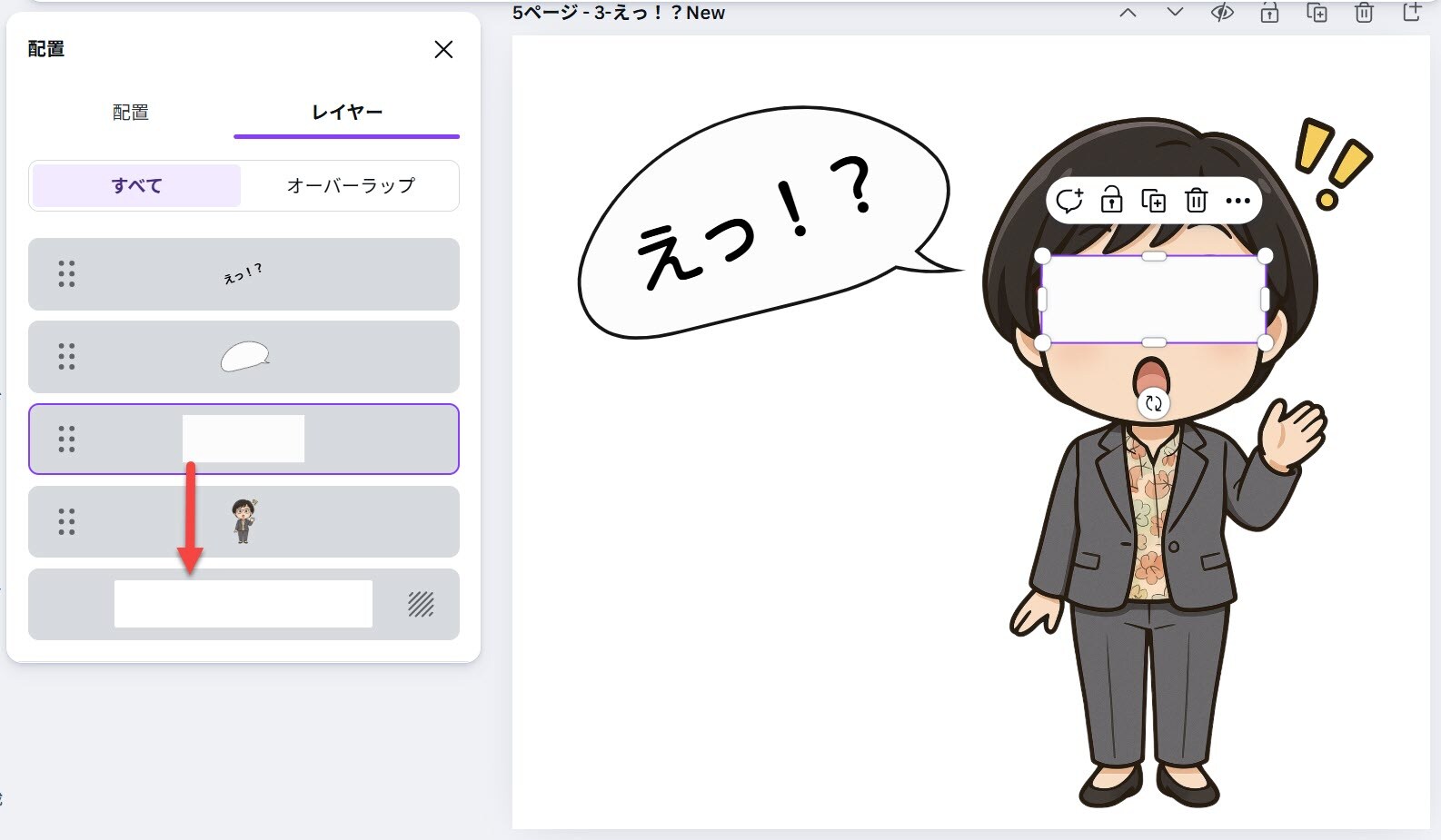 ちょうど目が隠れるようなサイズの白い長方形を置き