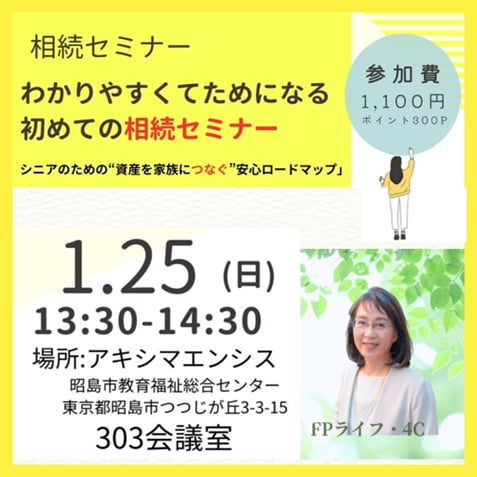 「わかりやすくてためになる、初めての相続セミナー」~シニアのための“資産を家族につなぐ”安心ロードマップ~