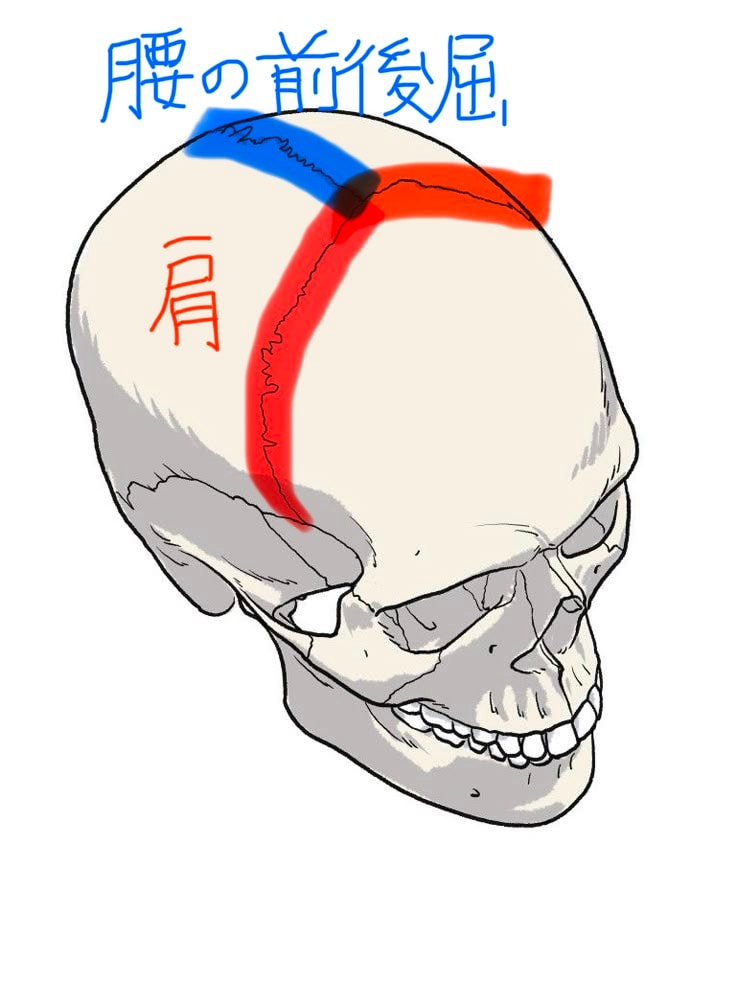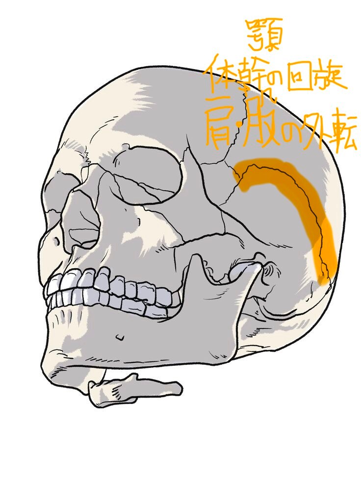 図の赤い部分の縫合は肩に関係しています!