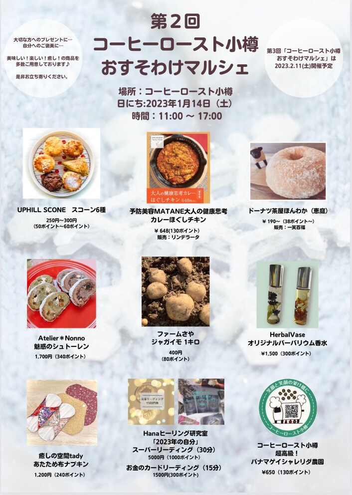 ようやく本題になりますが、本日1月14日(土)は「第二回コーヒーロースト小樽おすそわけマルシェ」を開催いたします。