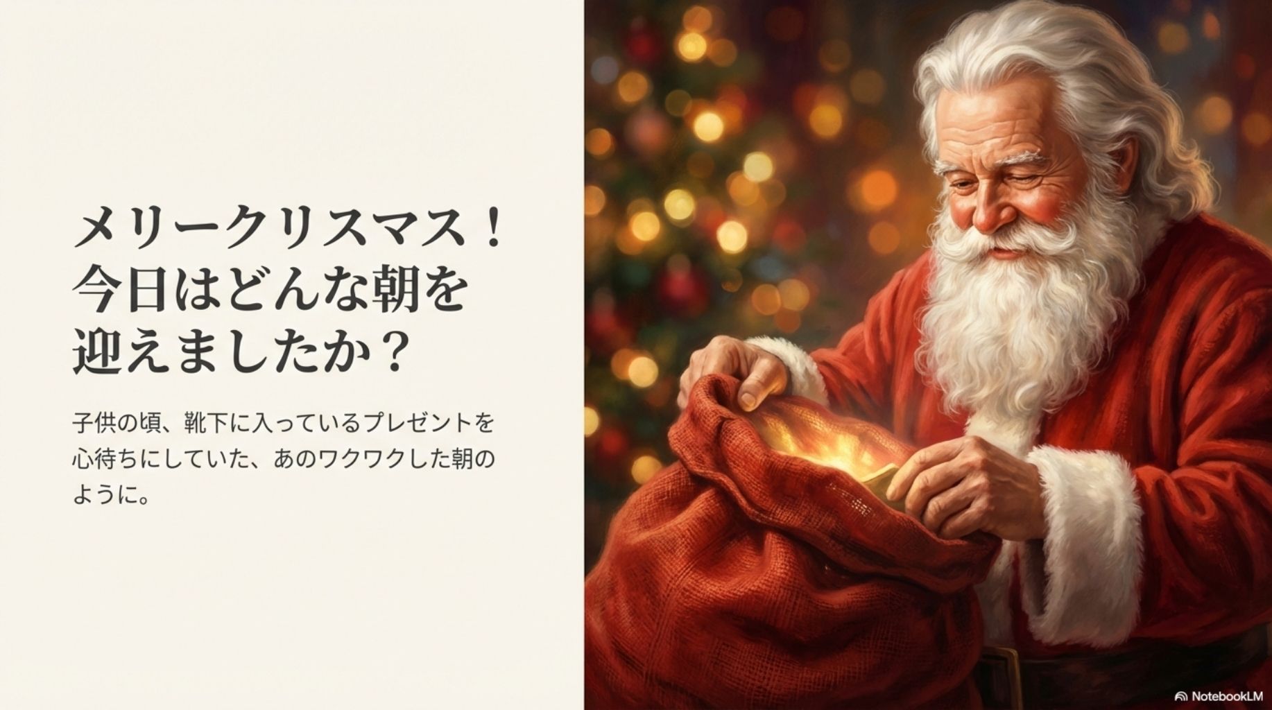 サンタクロースは西洋の文化ですが、西洋人の情報で未来のための行動したことで、時代を変革していくことは明治維新にそっくりですよね!