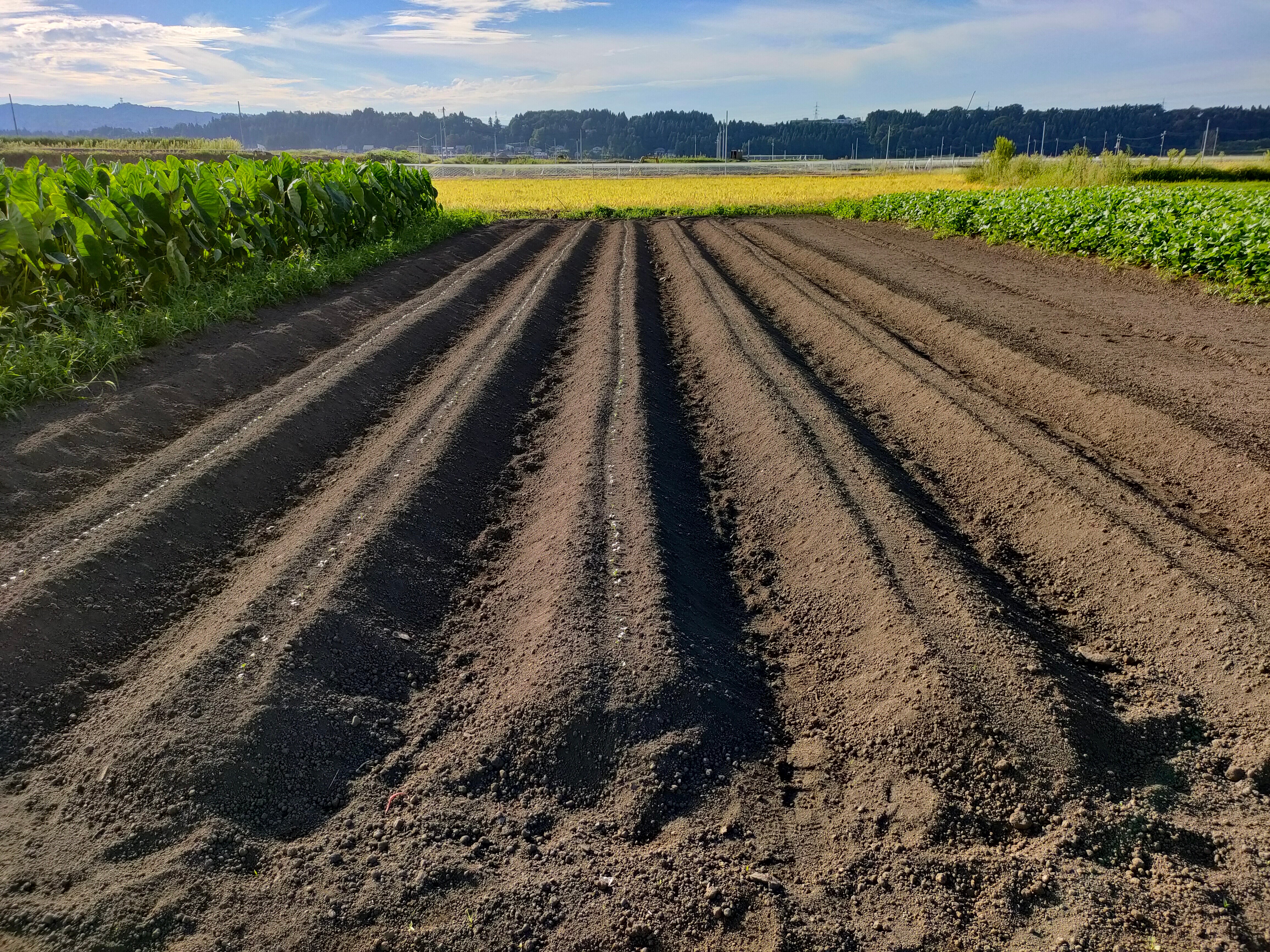 また、土が細かい方が除草しやすいので、畝立前の耕耘で土を細かくしておく事も大事です。
