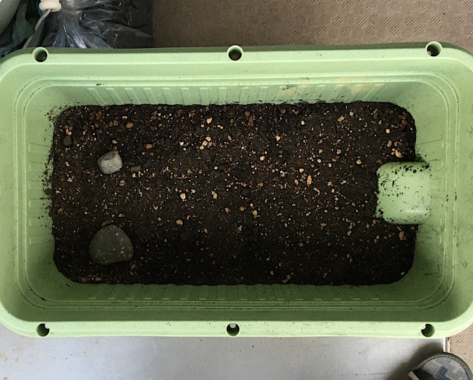 写真だと、なんか石が入ってますが、上層部の土を入れる時に取り出しました。