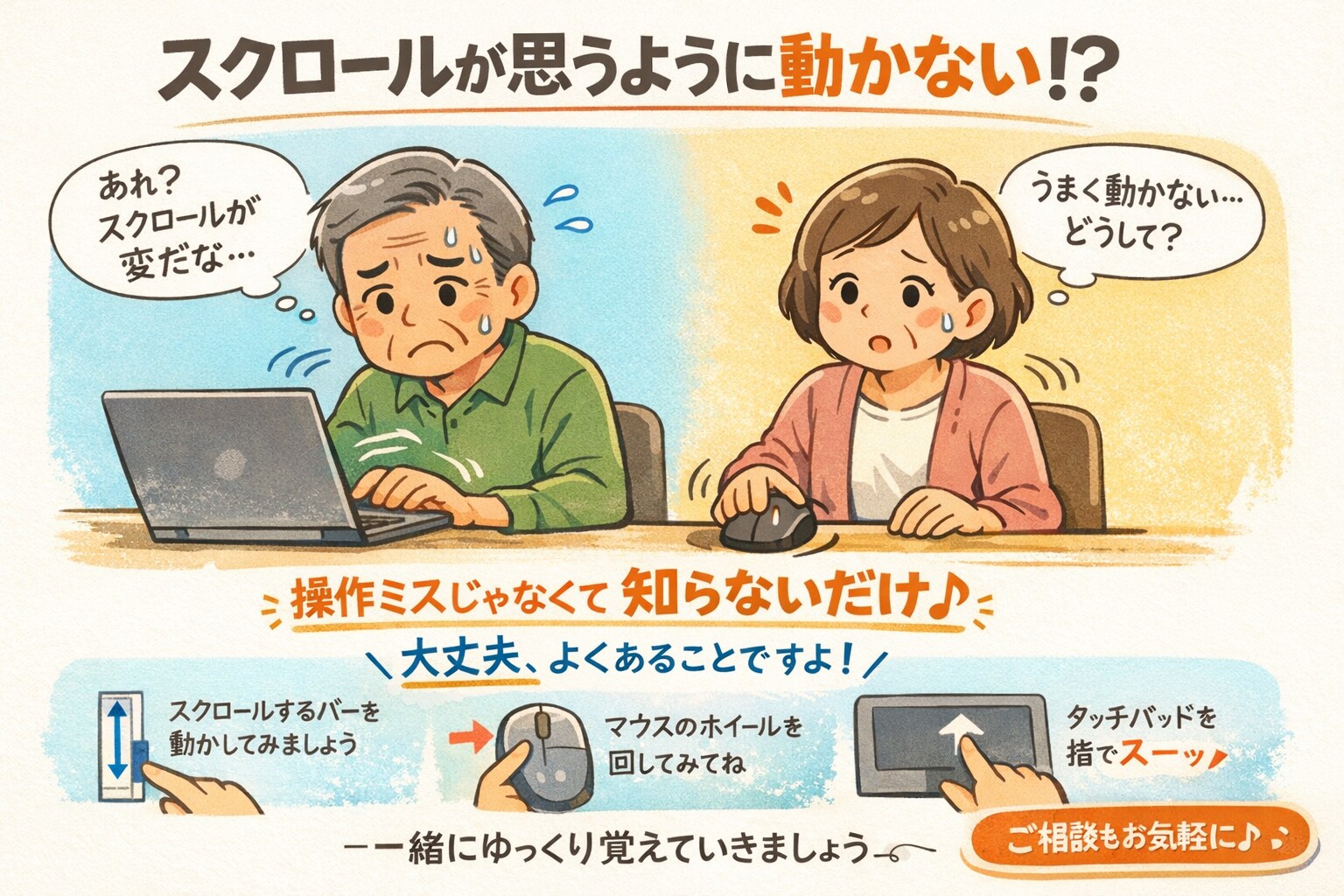スクロールが思うように動かないとき、