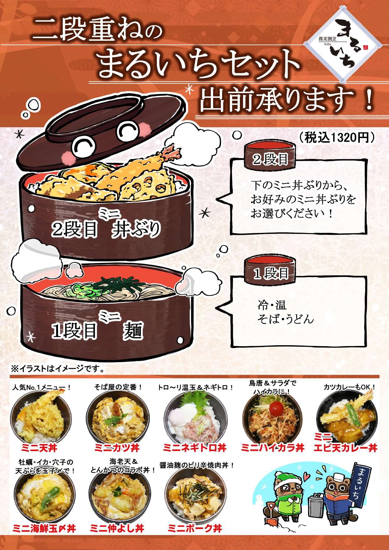 当店のランチメニューで人気なのが、そばor(うどん)とミニ丼ぶりがセットになった「まるいちセット」!