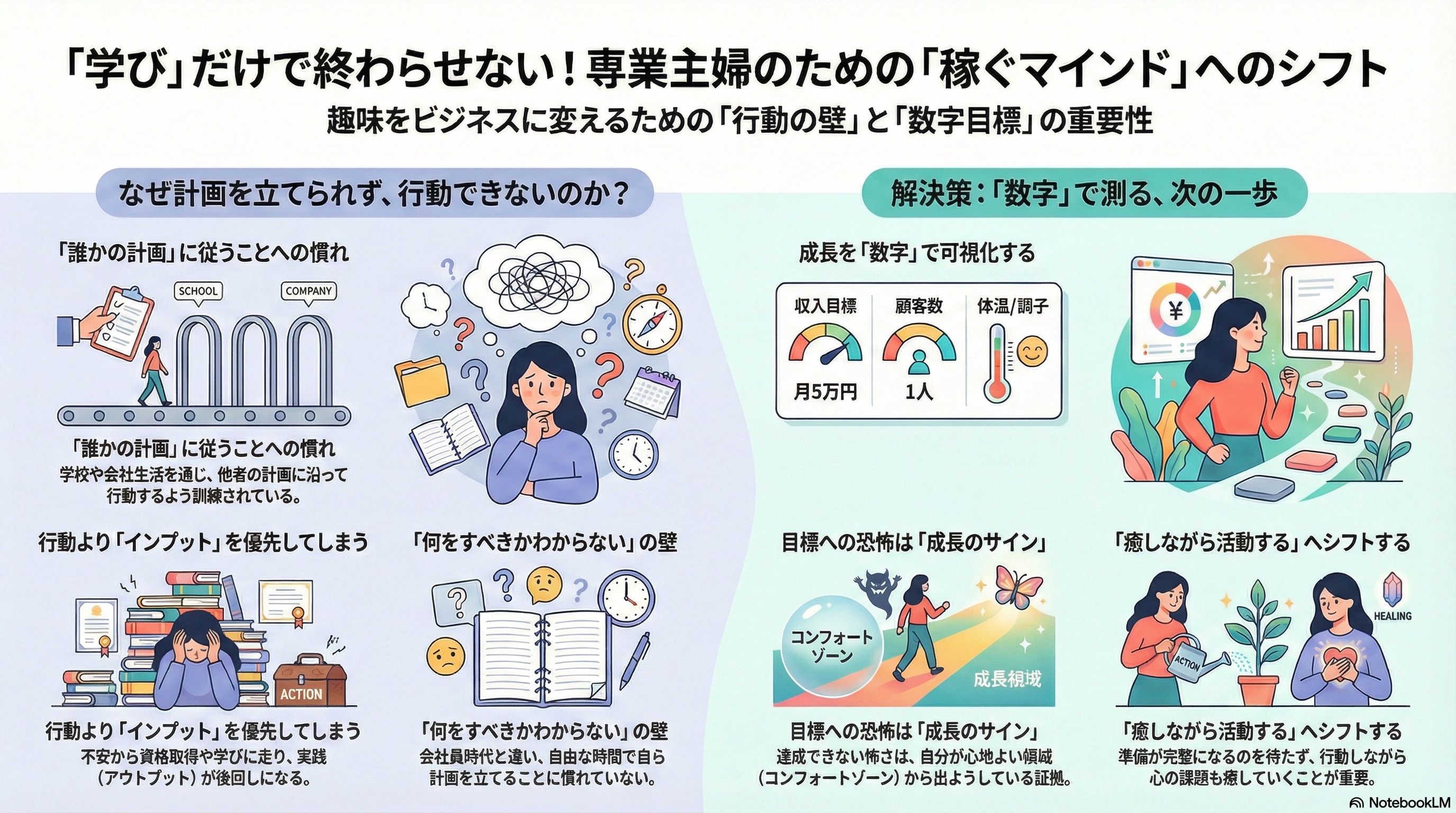 学んだ知識をどう収入に繋げればいいのか、その方法がわからなくて、行動できないまま時間だけが過ぎていく...