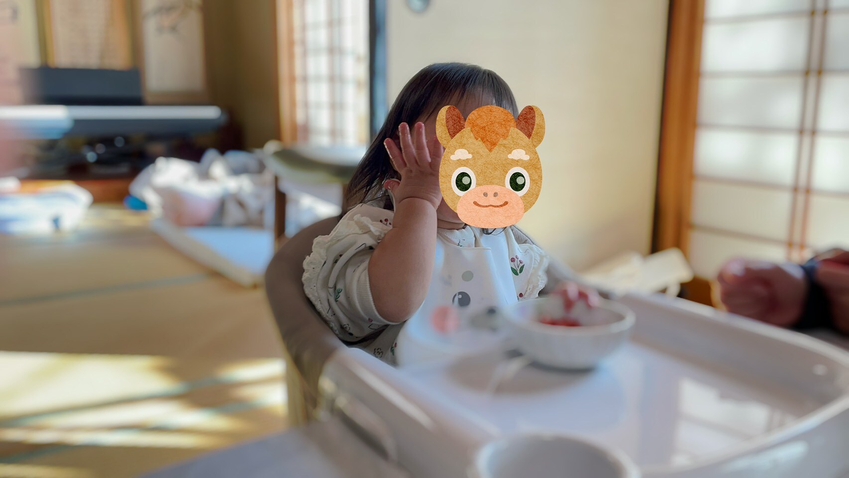 これは私が「いちごおいしいね🍓」と言いながらほっぺに手を当てていたら真似した写真です!笑