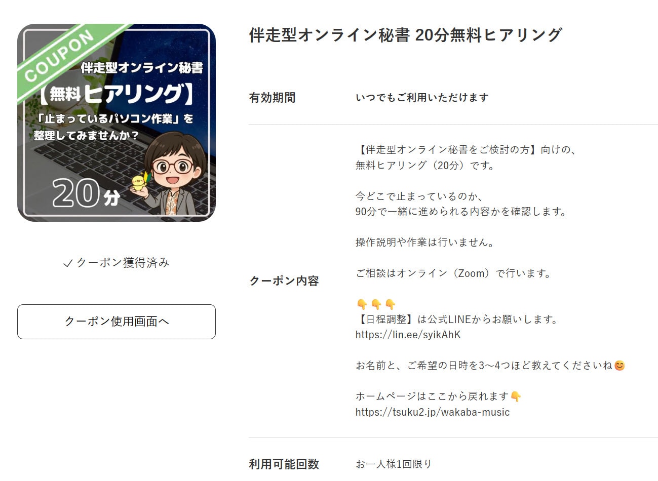 伴走型オンライン秘書(90分)で 一緒に進める内容かどうかを確認する時間です。