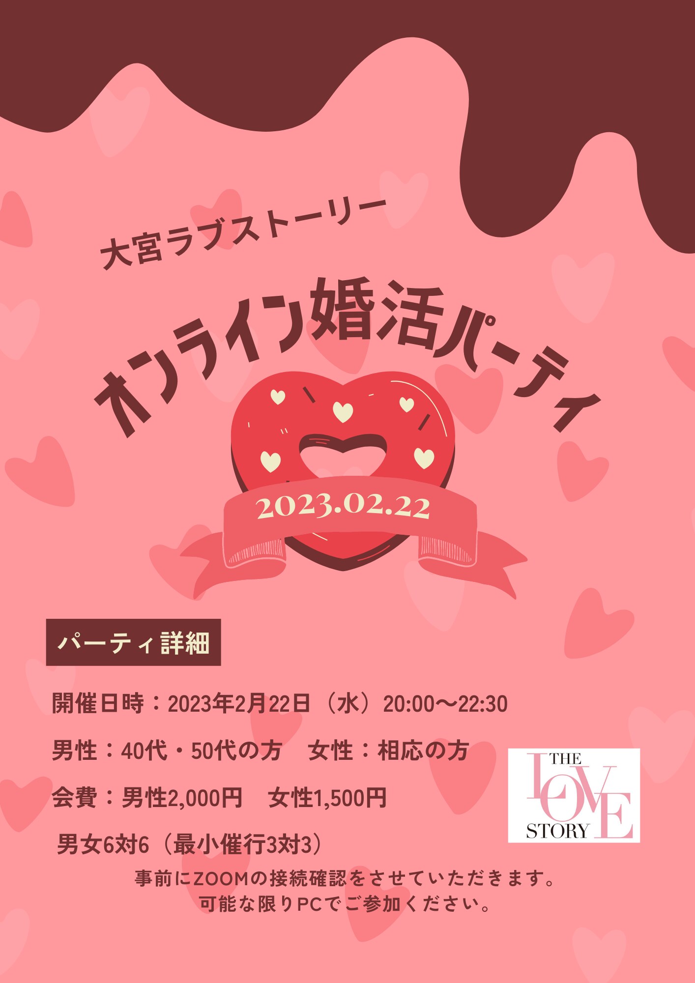 2月のラブストーリーシリーズ《大宮ラブストーリー》は、40・50代のオンライン婚活パーティーです。