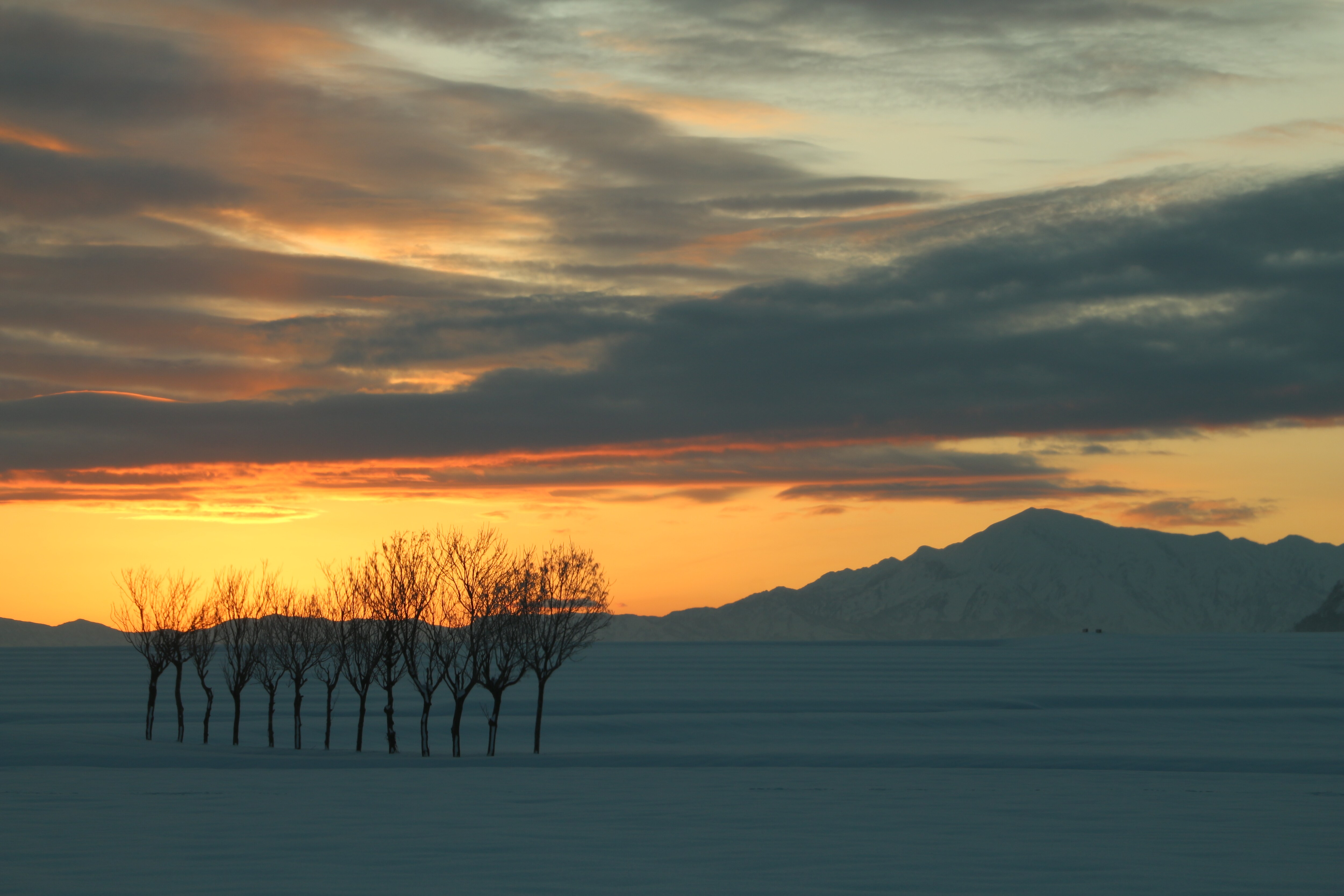 田んぼの準備が始まる3月まで楽しむことができる雪原の風景。