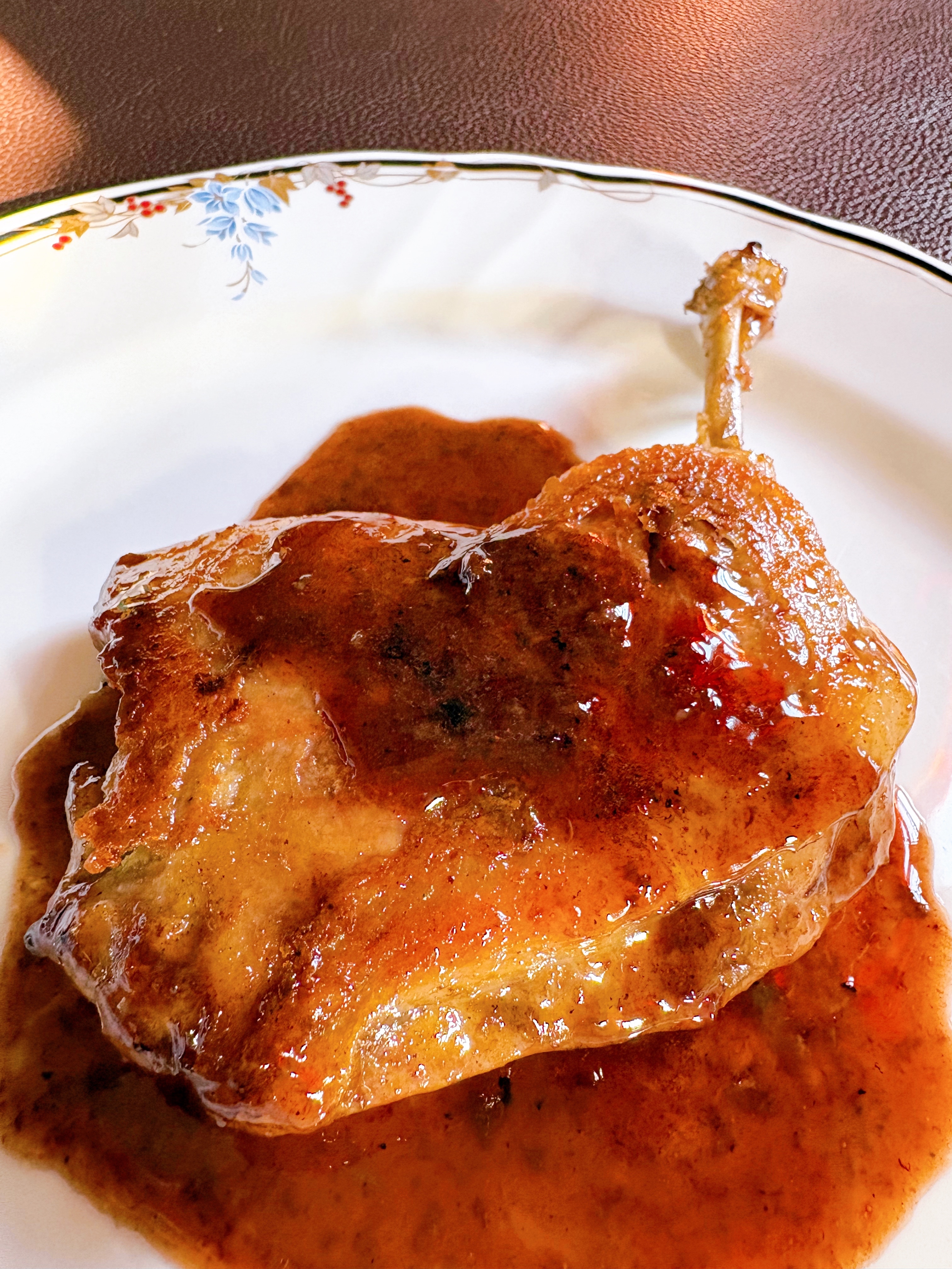 歯のいらないくらいにジューシーで柔らかく仕上げた骨付き鴨肉です