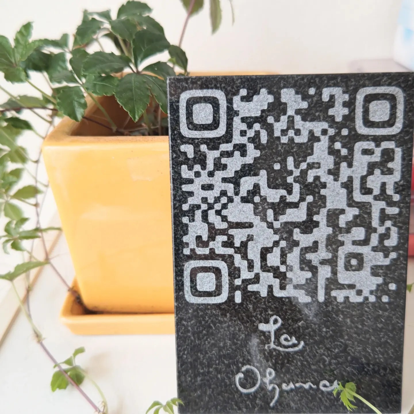 そのQRコードを石に彫り込んだ当店の商品【QRストーン】(詳細は→こちらから)