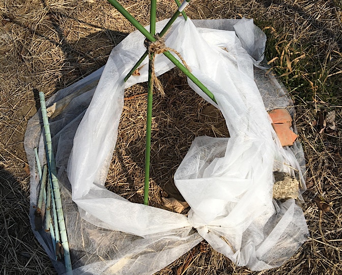 ほうれん草は小さいながらも元気だったので、キャベツに掛けてた不織布は、ほうれん草にベタ掛けしました。