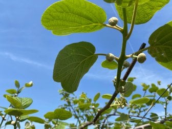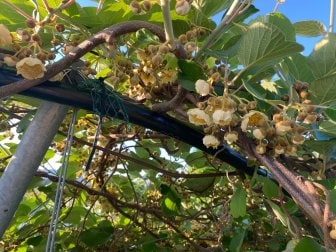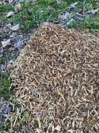キウイフルーツの剪定びばをウッドチッパーで細かくチップの状態にしてます。