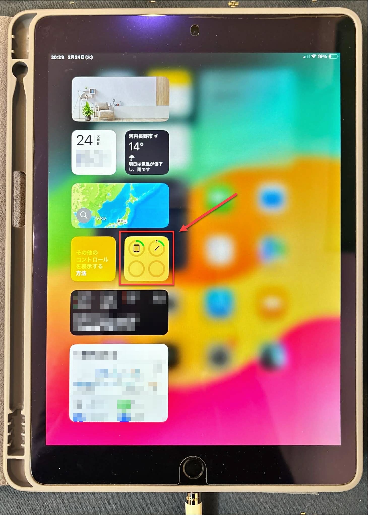 ② ホーム画面の「バッテリー」ウィジェットを確認