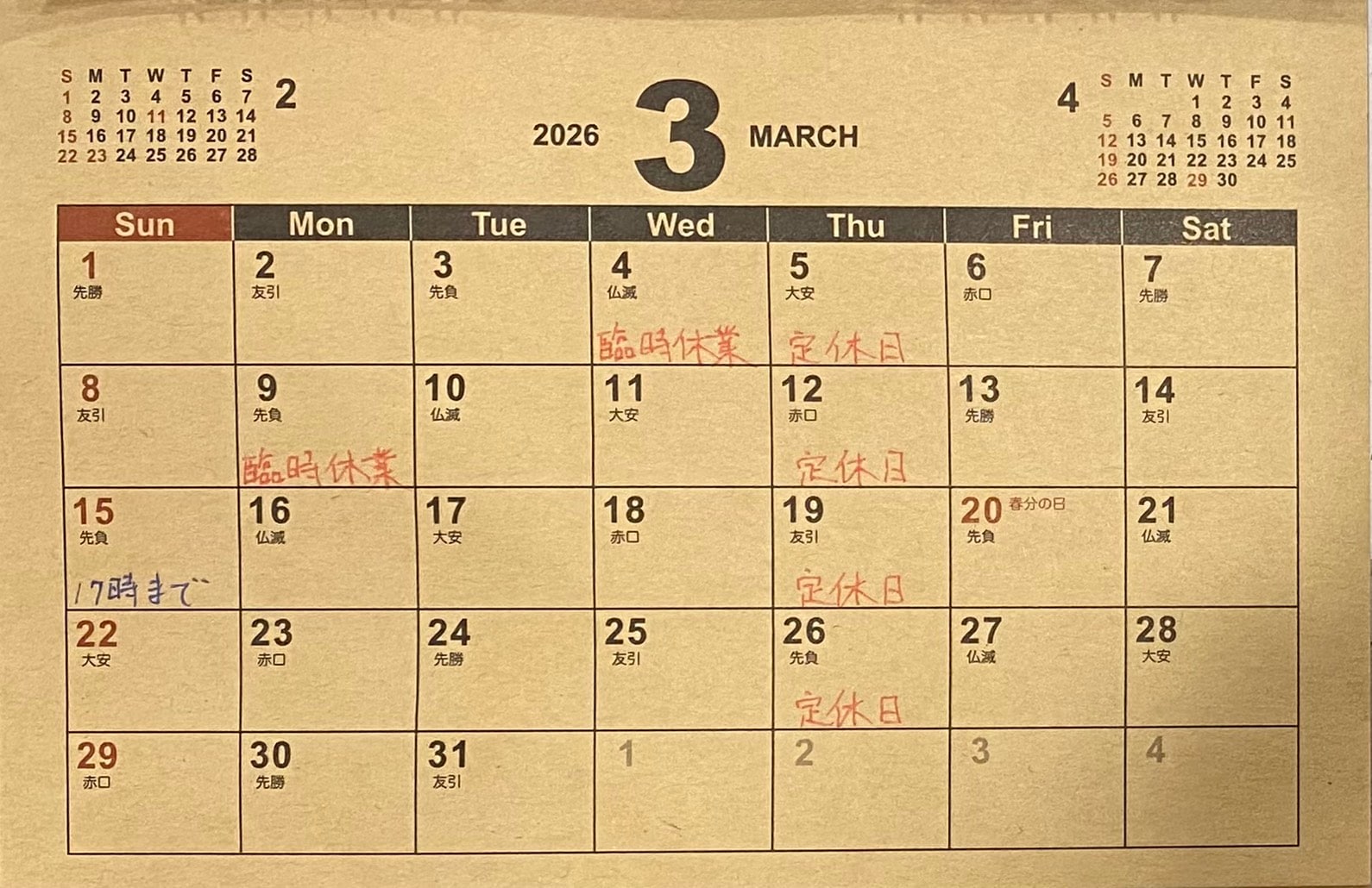 3月の営業日