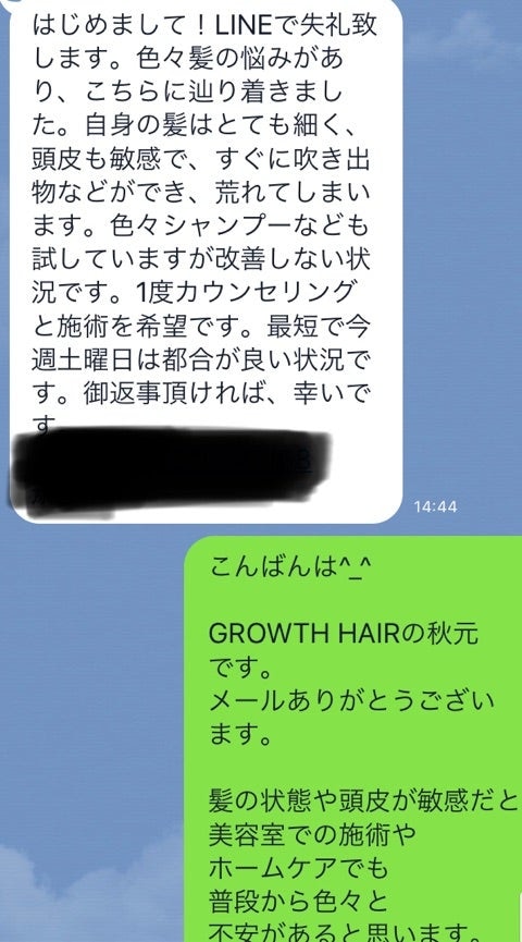 髪や頭皮のお悩み、施術についてのご相談はこちら👇