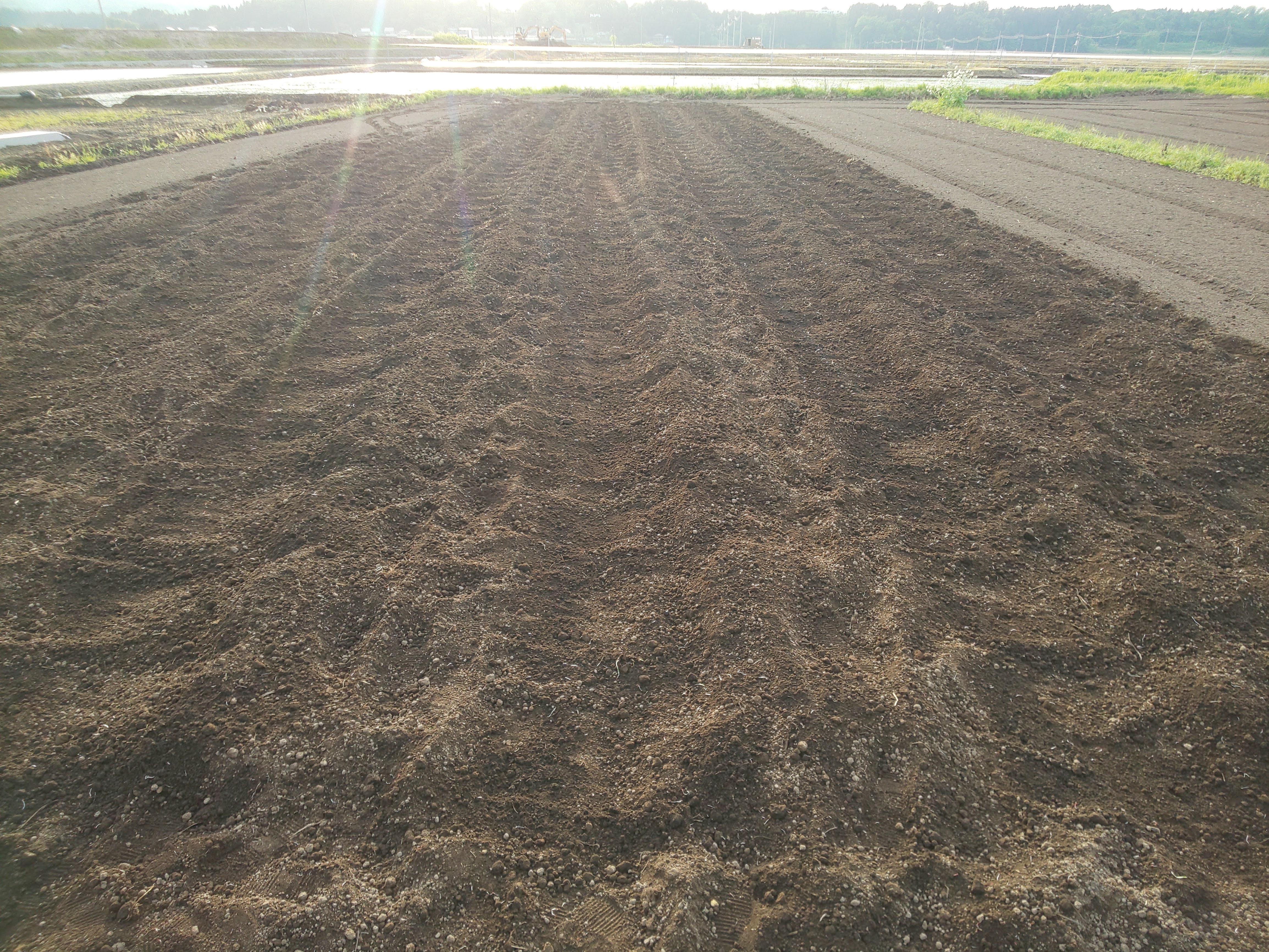 種芋植付後に土を被せて平らになったら、どこにサトイモさんが植わっているのかわからなくなってしまいました!