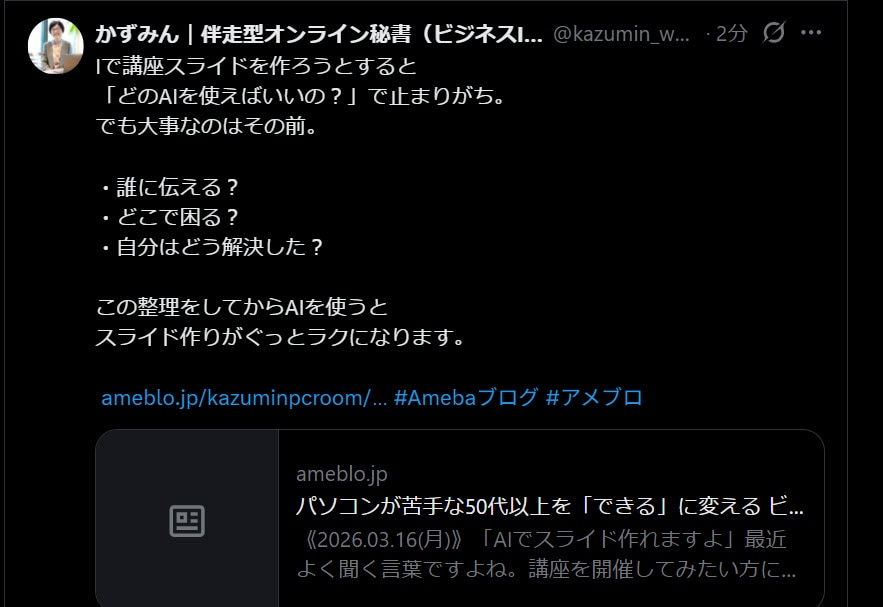 アメブロの記事をX(旧Twitter)にシェアした時、