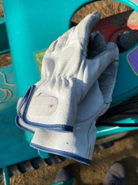 レモンの枝🍋には強烈なトゲがあるので皮の手袋🧤をして作業してます。