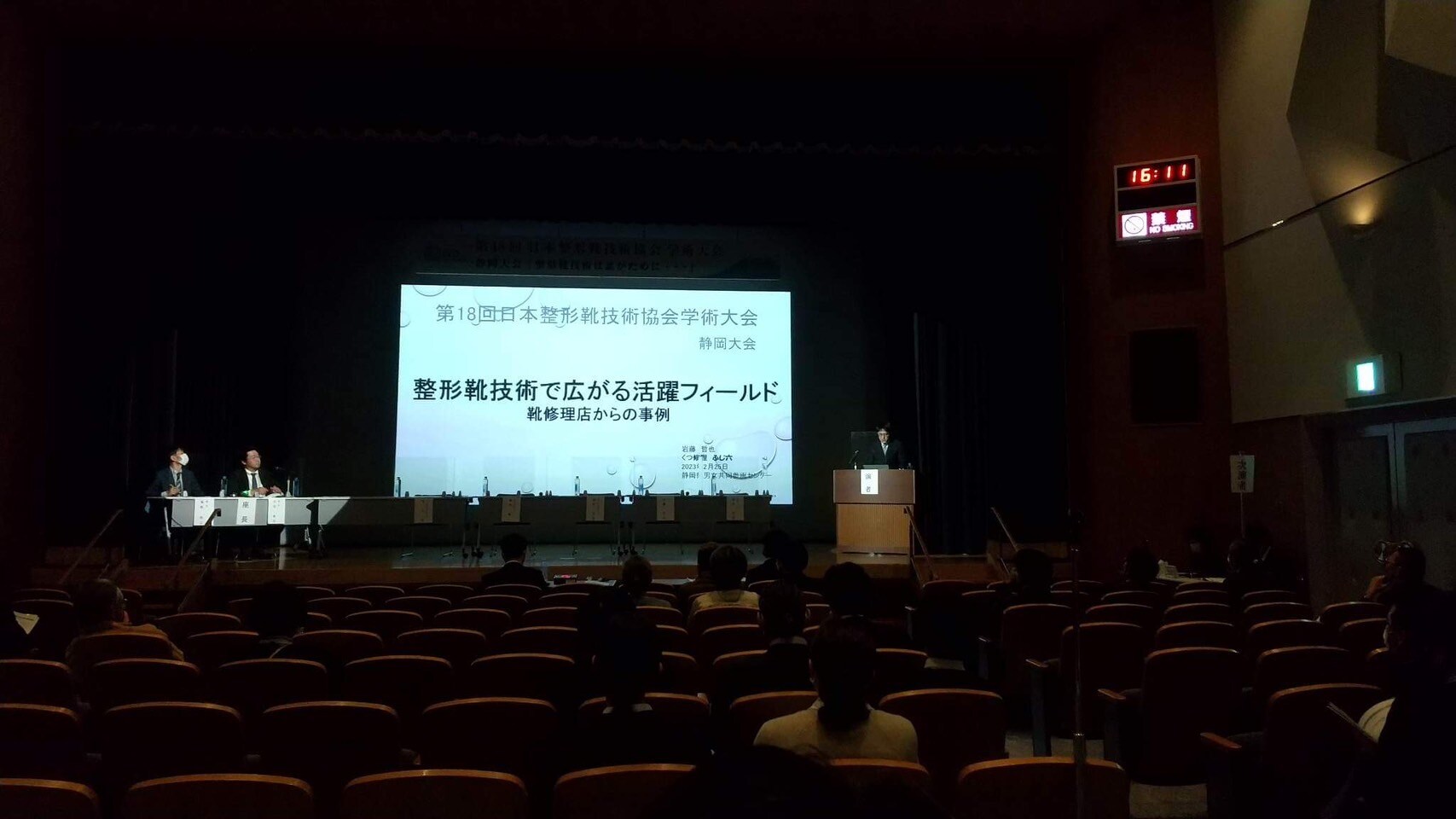 静岡でIVO(日本整形靴技術協会学術学術大会静岡大会)という学会がありまして、その学会の一つのセッションで発表を依頼されたんです。学会で発表なんてことは一生に一度あるかないかですので、シンポジストという立場で参加させていただきました。発表終わるまではなんでうけたのかな~・・・なんて後悔多々していましたが、無事終わると、お受けしてよかったと。自分のこれまでの振り返りも出来ました。