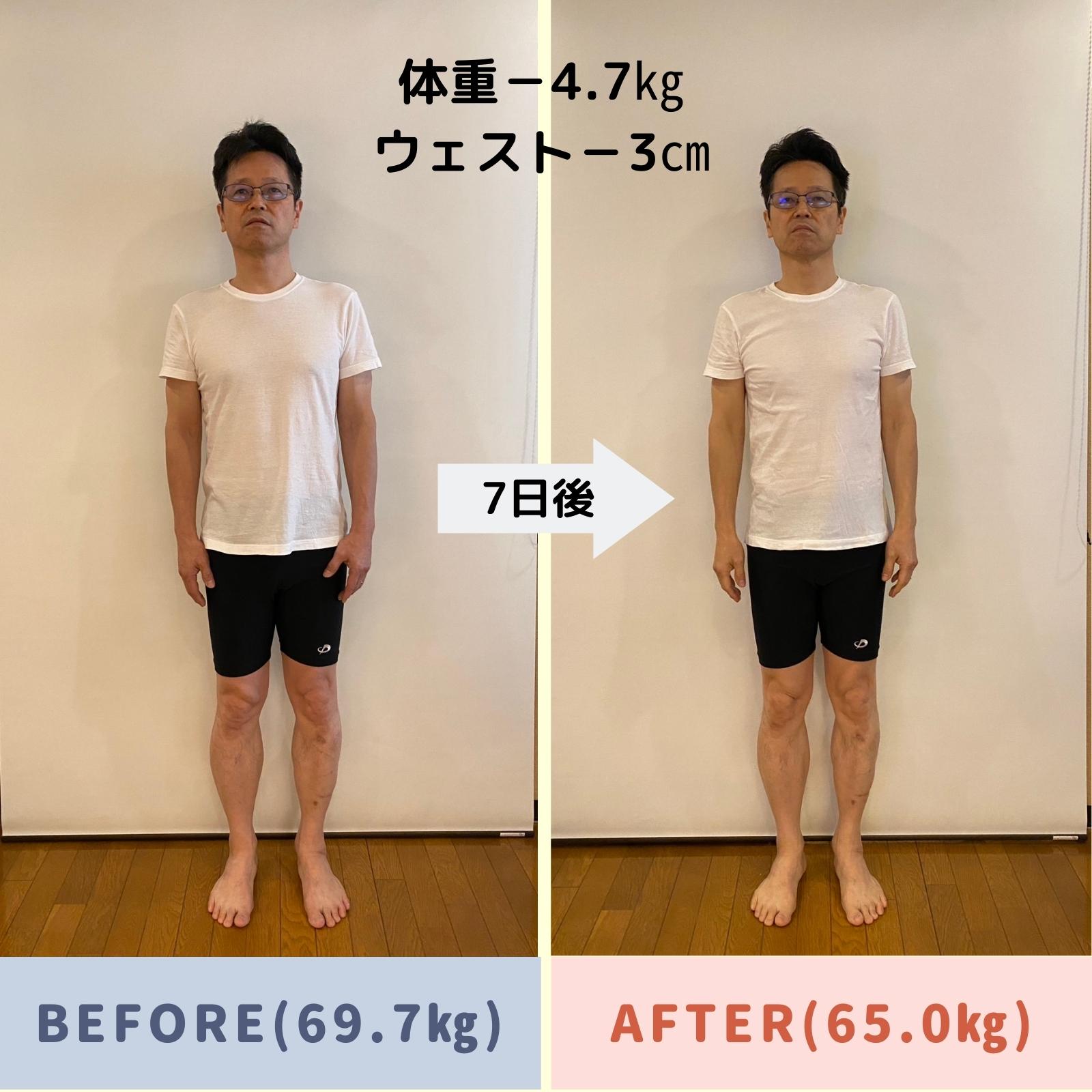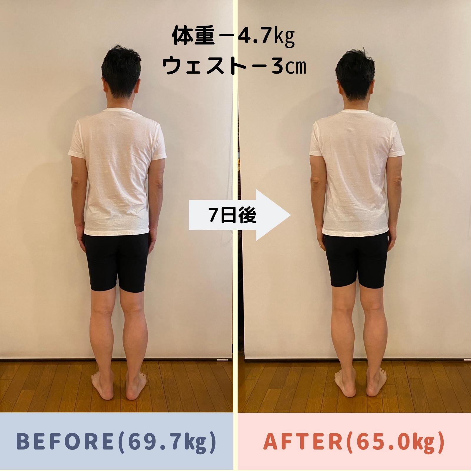 7日間のファスティングで体重-4.7㎏、ウェストー3㎝を達成しました。