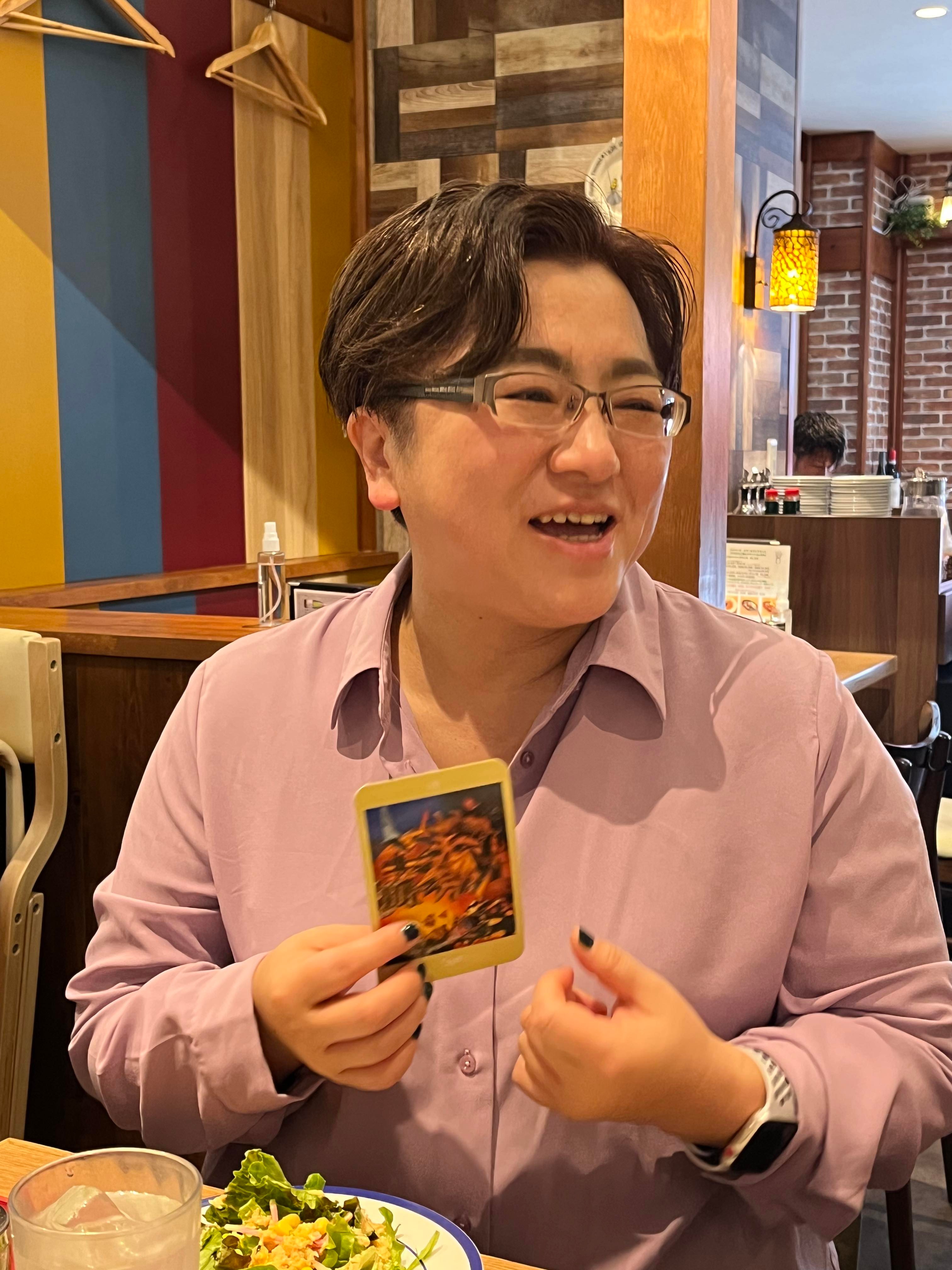 スラムダンクの話題、着物の話、筋膜リリースの話題、手相、マーケティング戦略の話と多岐にわたるお話がなされました。二次会はキャリアクリアリングのコミュニティカフェスペースに移動して、お抹茶体験、筋膜リリース体験、数秘術体験となりました。