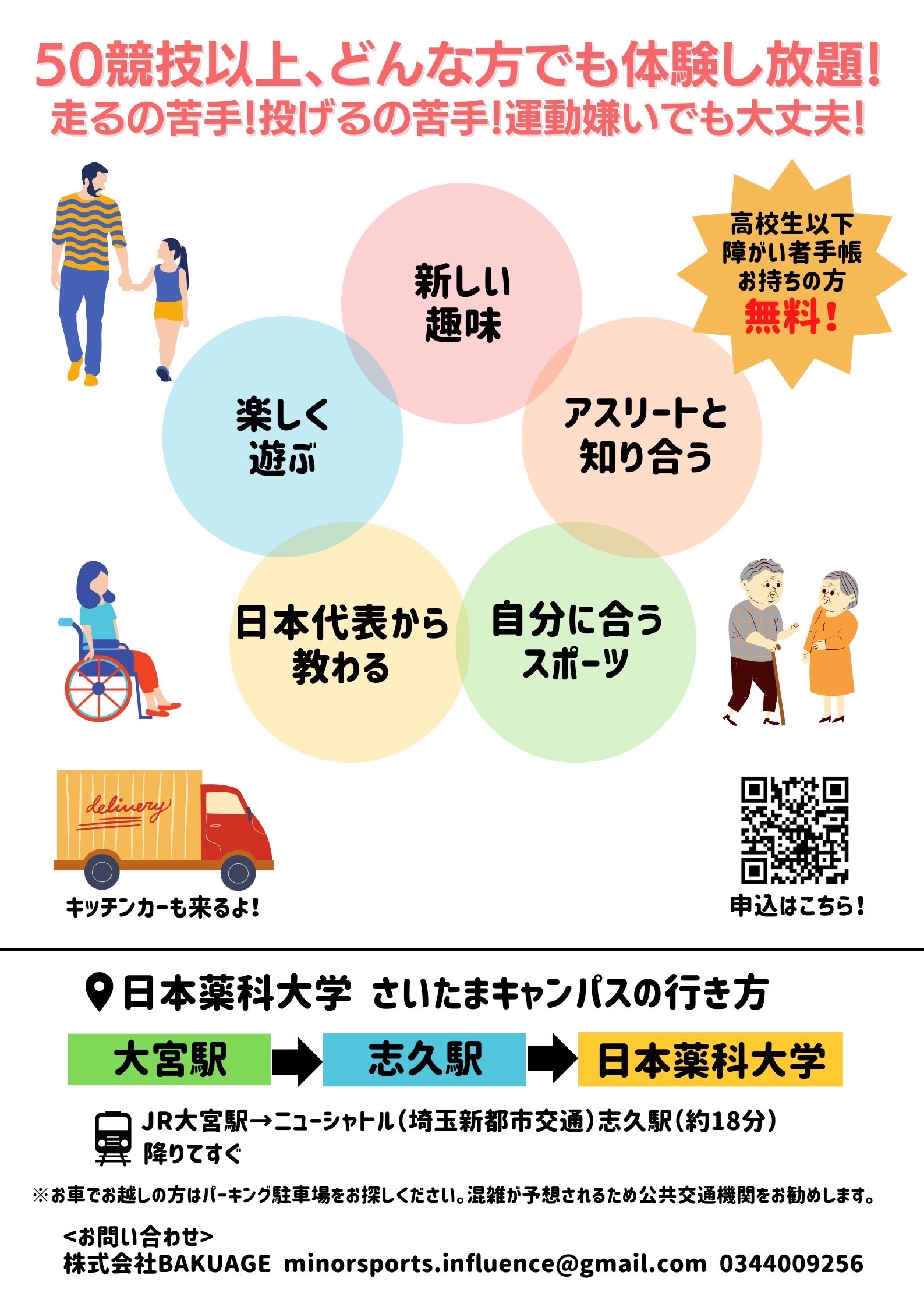マイナー競技認知度爆上祭は、日本薬科大学のキャンパスを貸し切って50競技以上体験し放題と交流し放題のイベントです!