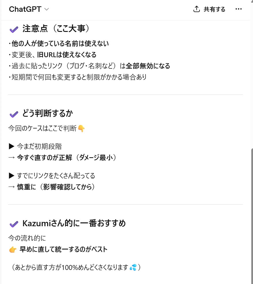 ・URLを変更すると、これまでのURLは使えなくなります
