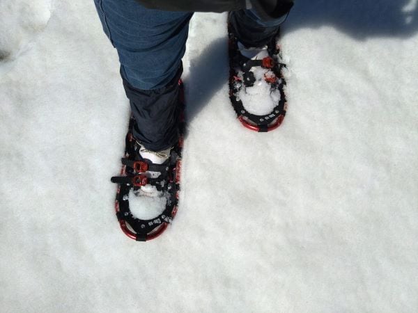 スノーシューを履いて行ったけど、作業場にたどり着いたら壊れてしまいました。