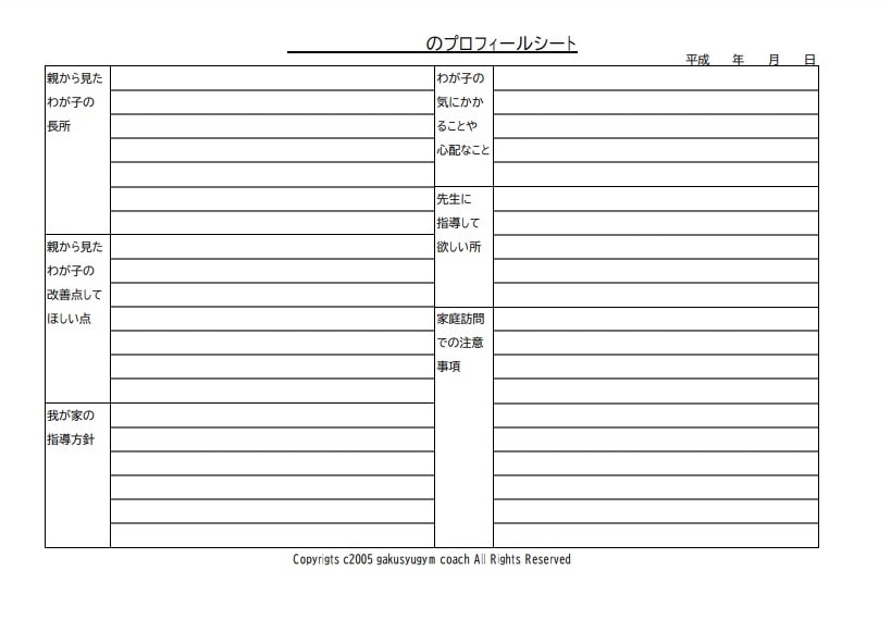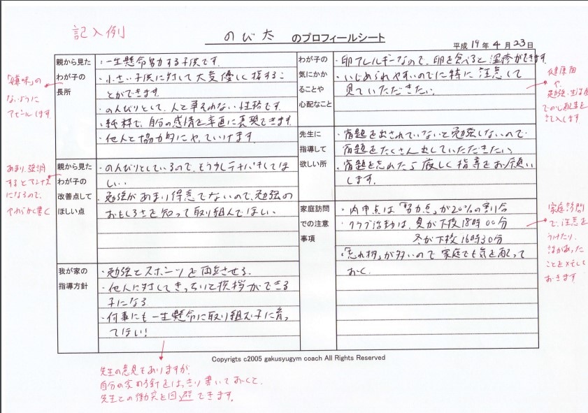担任の先生に渡すプロフィールシートも使えます。どうぞ使ってください。