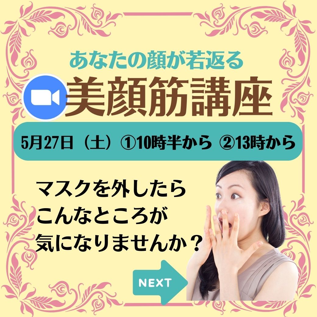 オンラインでは、美顔筋講座を開催します。
