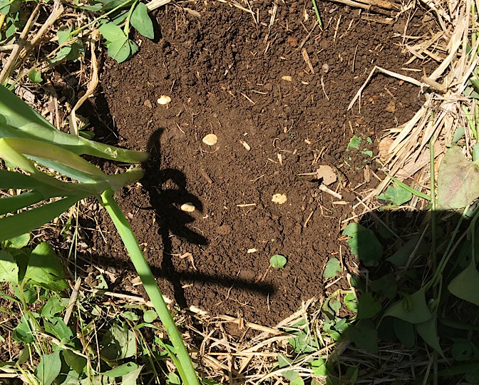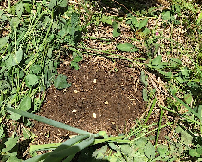 もう1ヶ所は、向きを揃えて。(右上の種、埋まっちゃってます)