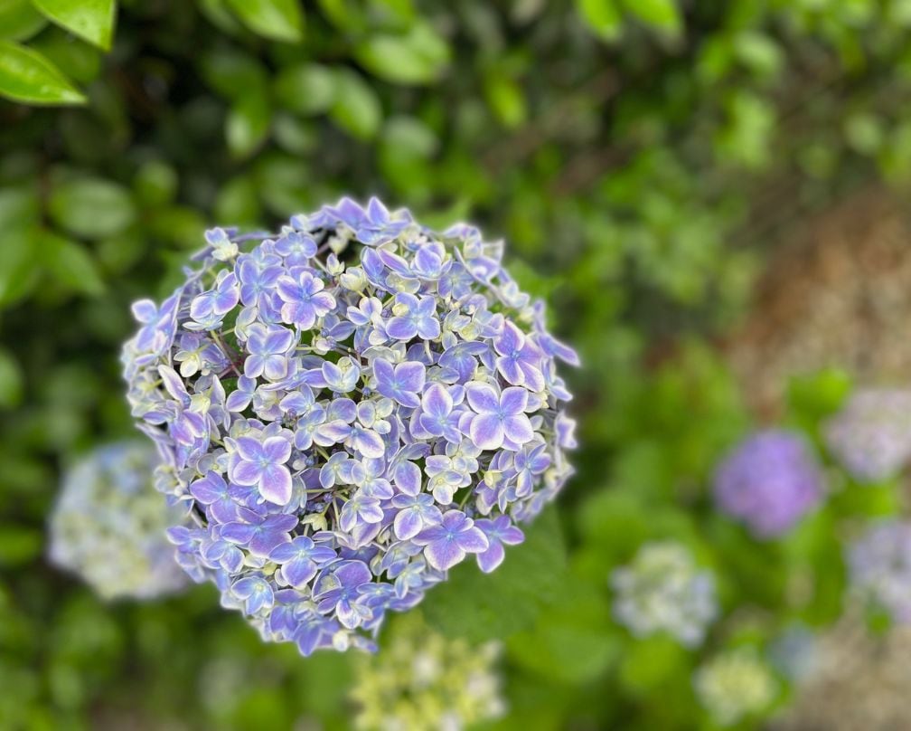「紫陽花は雨露が似合う」今朝ちょうど雨が上がったので庭で撮影しました。