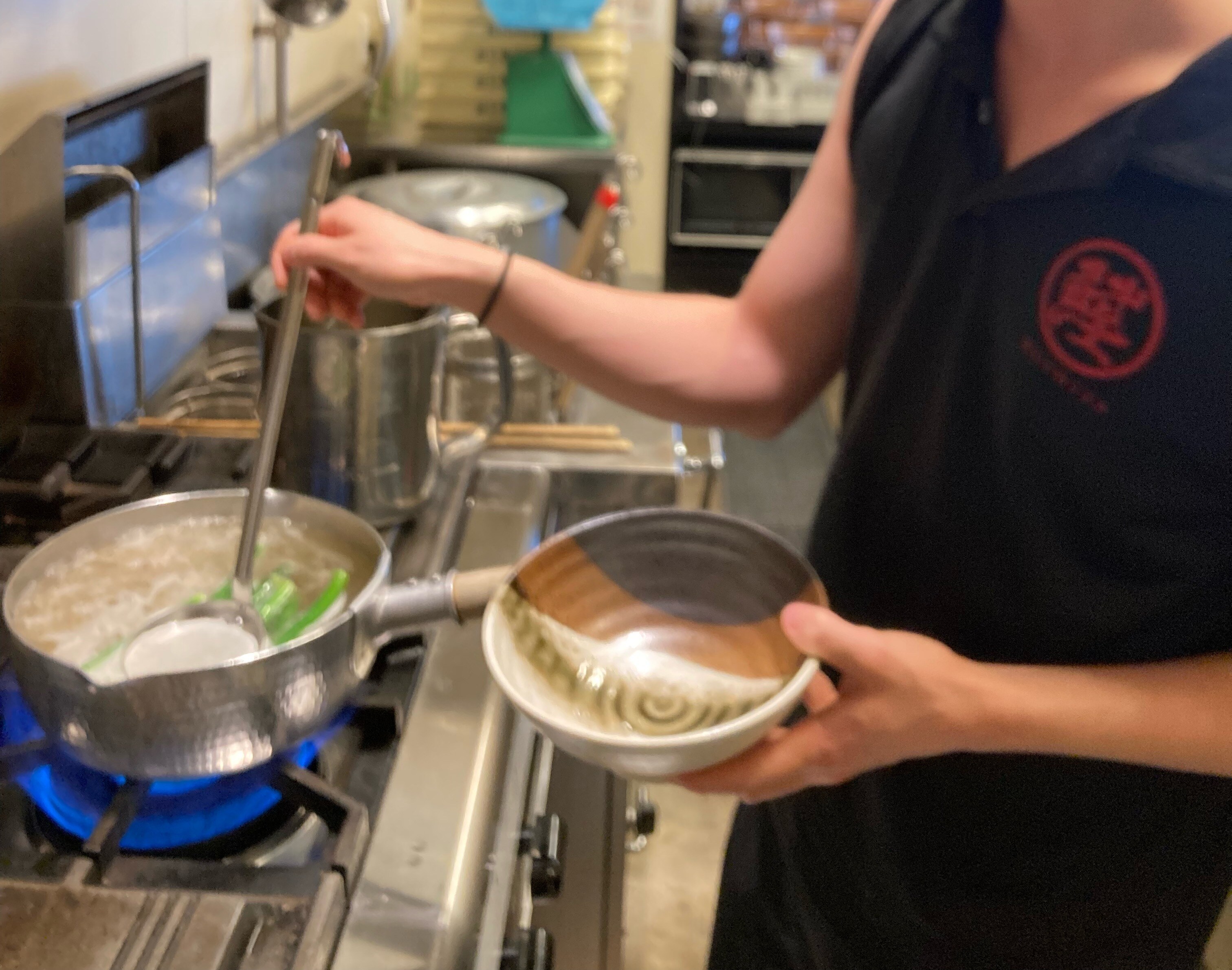 『【麺香房ぶしや】豚骨魚介スープ×【旨味たっぷり】鯛のだし汁』の麺香房ぶしやらしさを残しつつ、鯛の旨味とかけ合わせたオリジナルスープ✨