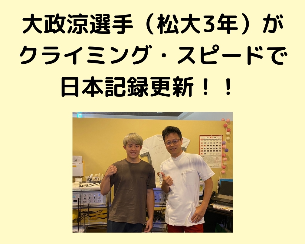 松山院(TOTAL BODy PRO)にメンテナンスで通っている大政涼選手(松山大学)が千葉県で開催された大会(スポーツクライミングスピード)で日本記録