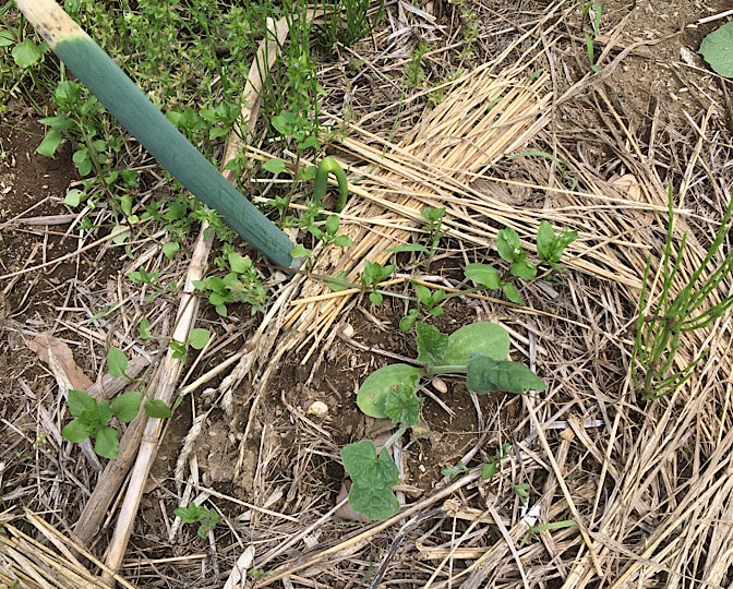 キュウリ畝には、絶えずイネ科の草が生えているようにすると、連作障害を抑えやすいそうですよ。