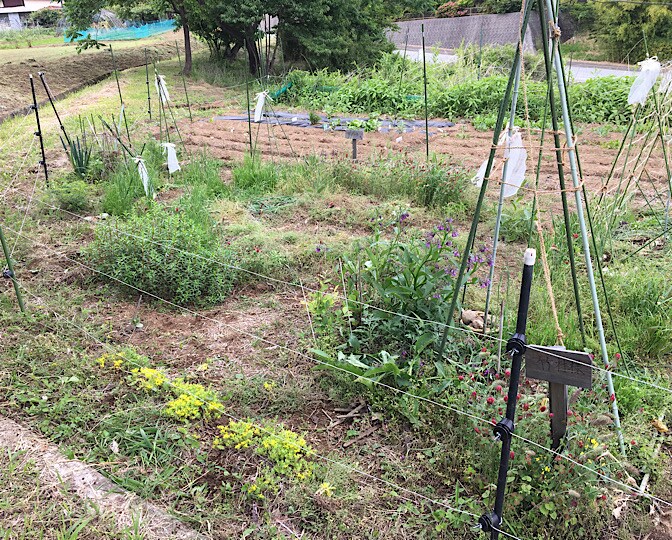 ちょっとハコベを刈ってみたので、ハコベ放置の場所と刈った所と、夏草の生え具合を比較できるかな!?