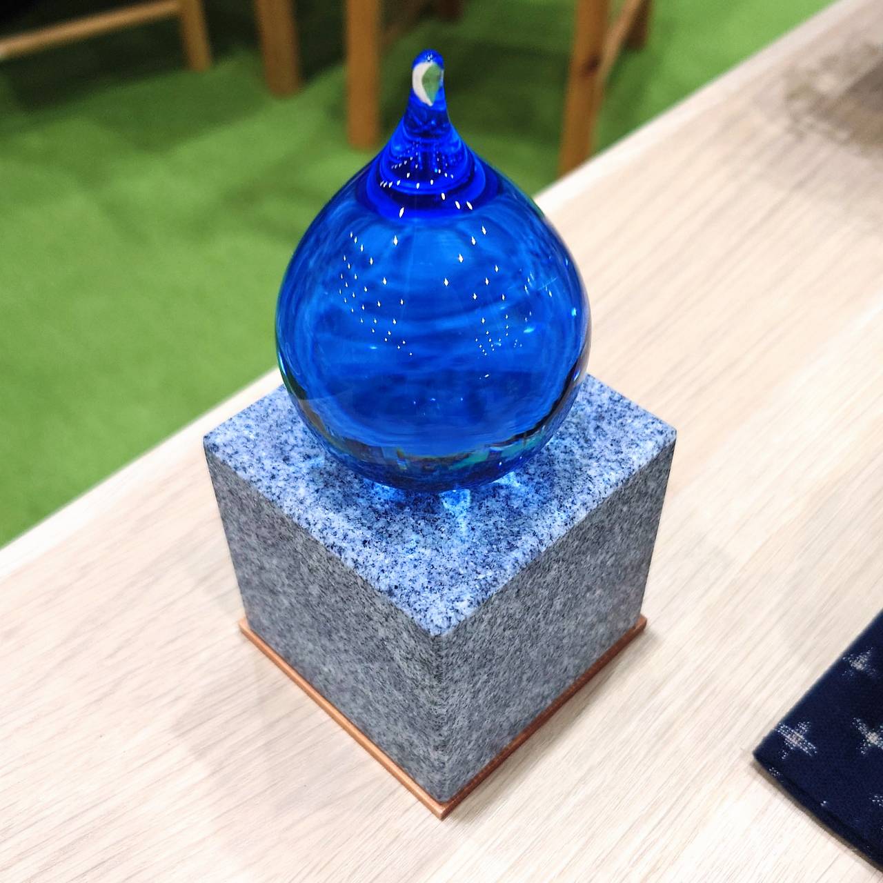 ガラスを精製する際に、庵治石の石の粉を混ぜることでできた