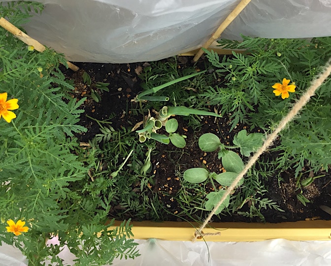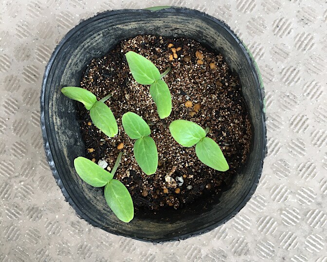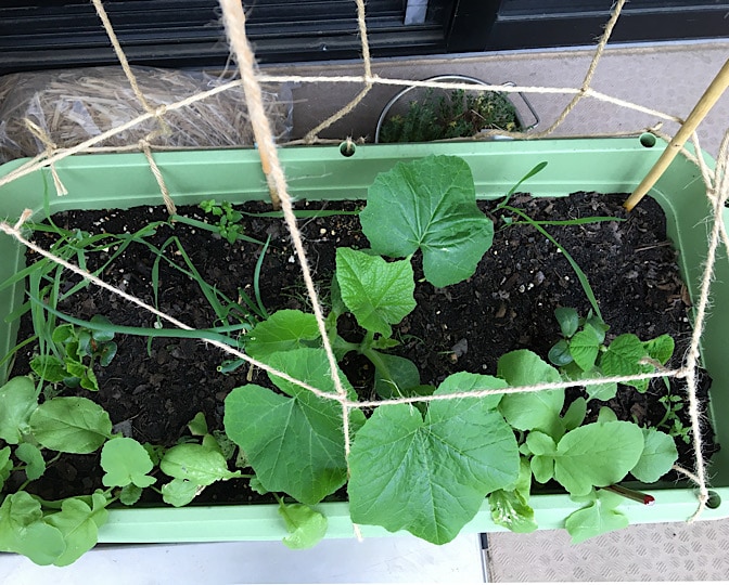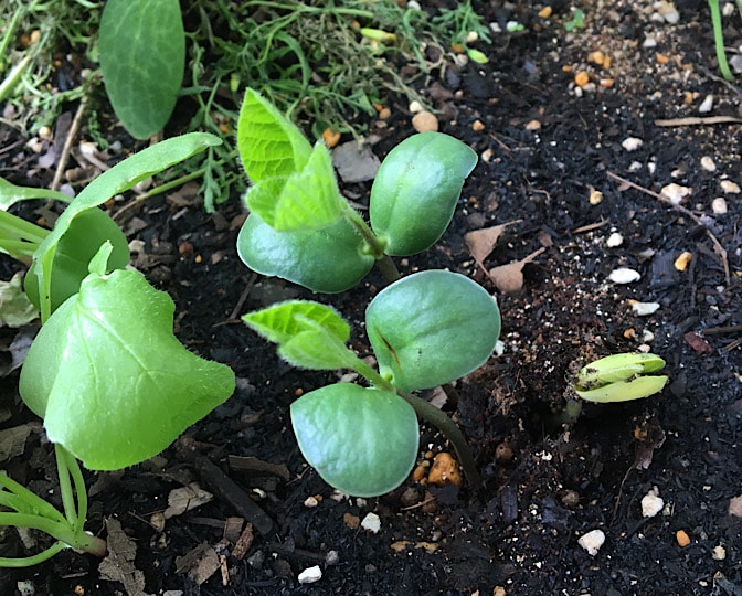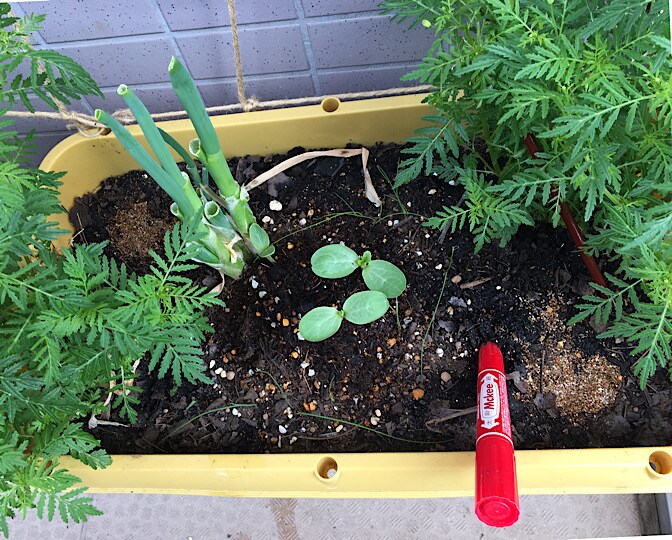 6月1日、カボチャプランターとスイカプランターに、エダマメを蒔きました。