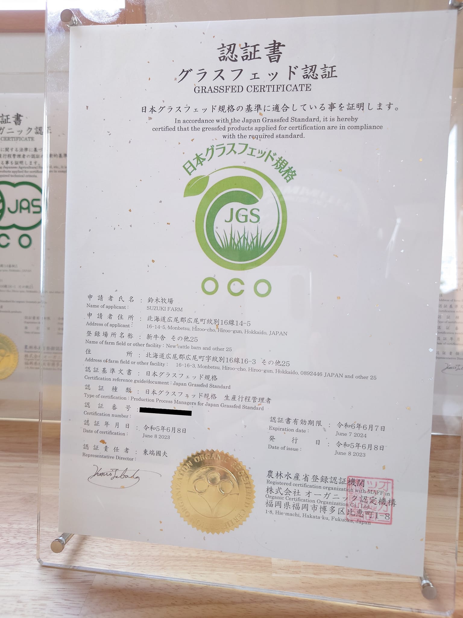 また、オーガニックとグラスフェッドの大先輩支倉さん、オーガニックのプロ近森さんの存在があったからこそ取得できました。