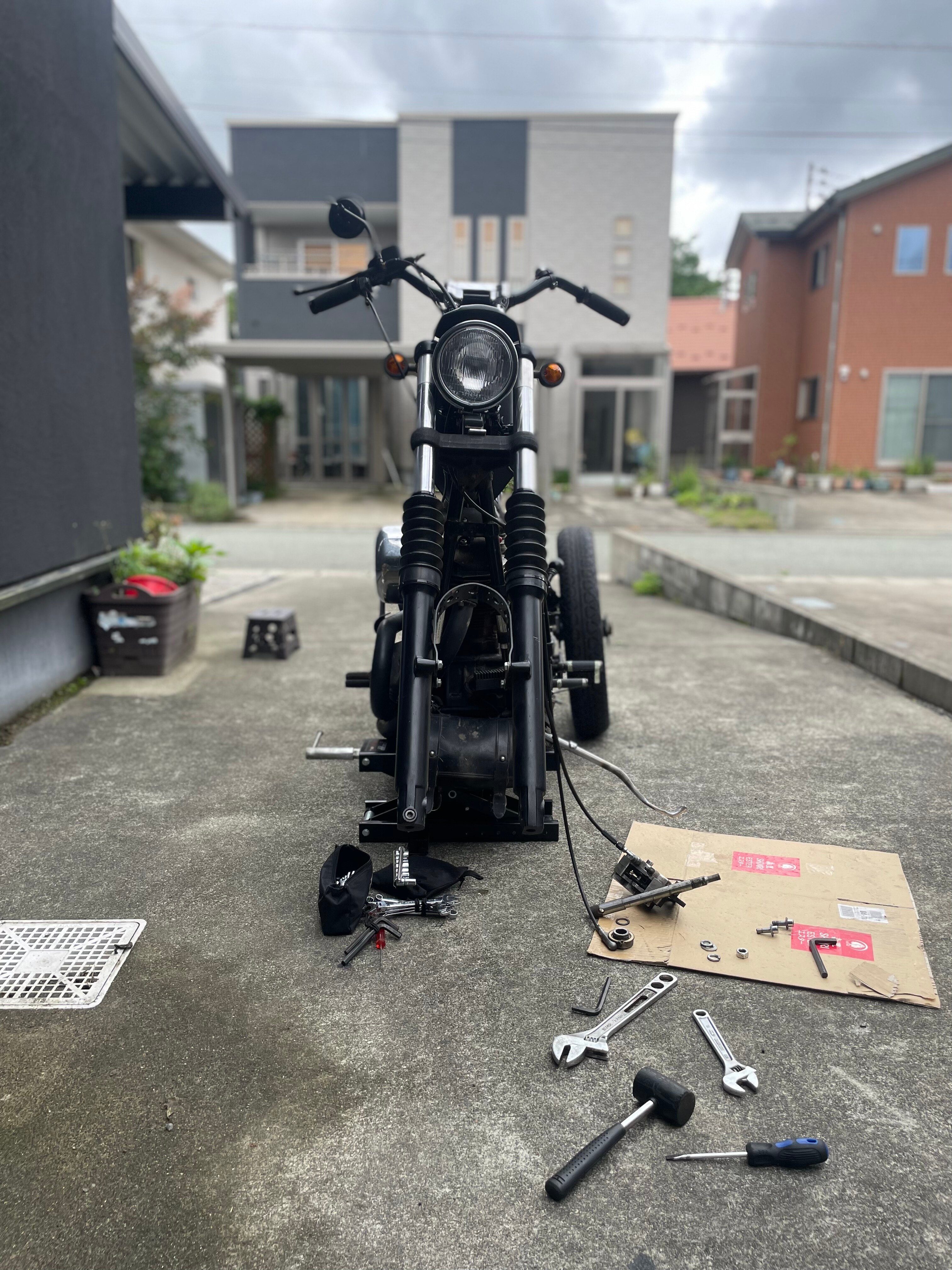 79年式と古いので、カスタムに応じてパーツは年式がバラバラの製品を取り付けている事もあり、ボルト1個でもサイズが合わない事など良くあります。
