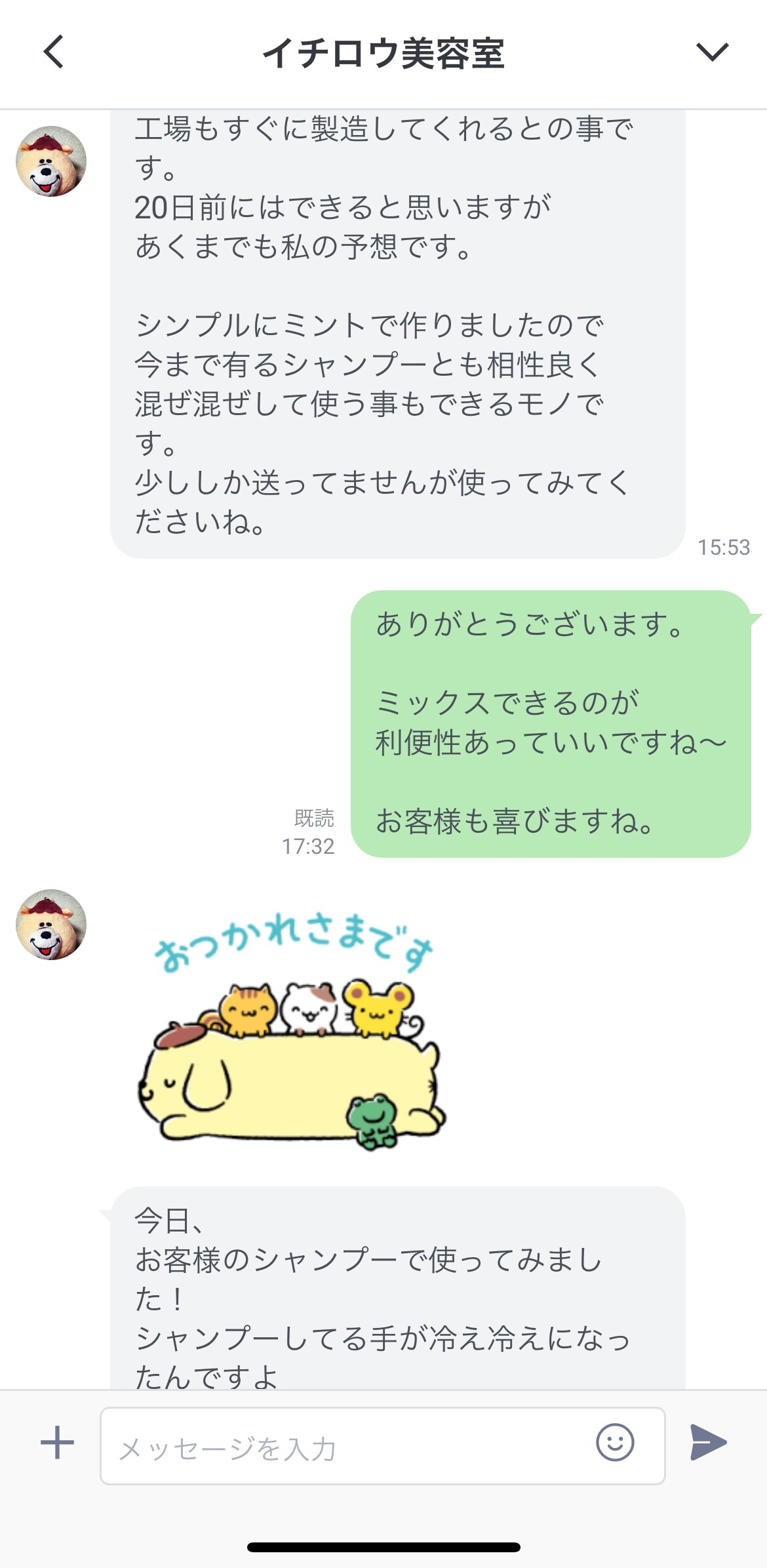 他のシンリフォーム(シャンプー)の香りとミックスして、オリジナルシャンプーも可能。