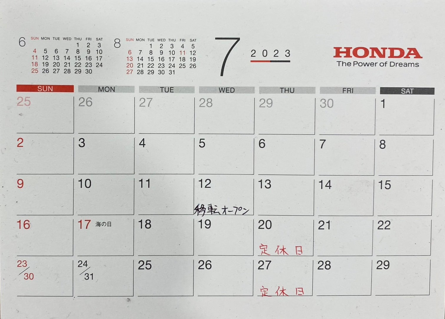 まずは手始めに営業日のお知らせです。カレンダーを添付しますのでご活用ください。