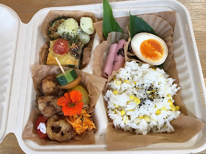 上野原市のお隣、藤野に《廃材エコビレッジゆるゆる》という面白い場所があって、そこで暮らしてる森魔女さんの作ってくれた魔女弁当です!!