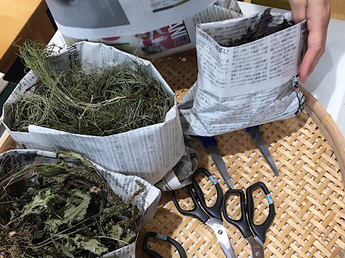 その後、持って来て頂いた、野草(キレイに乾燥させたもの)を使って、お好みの野草でチンキ作り。